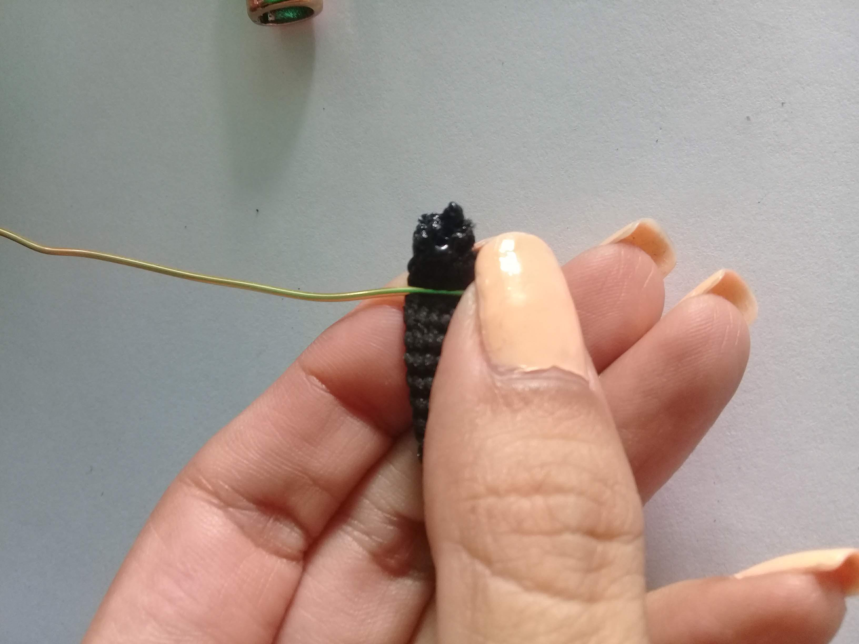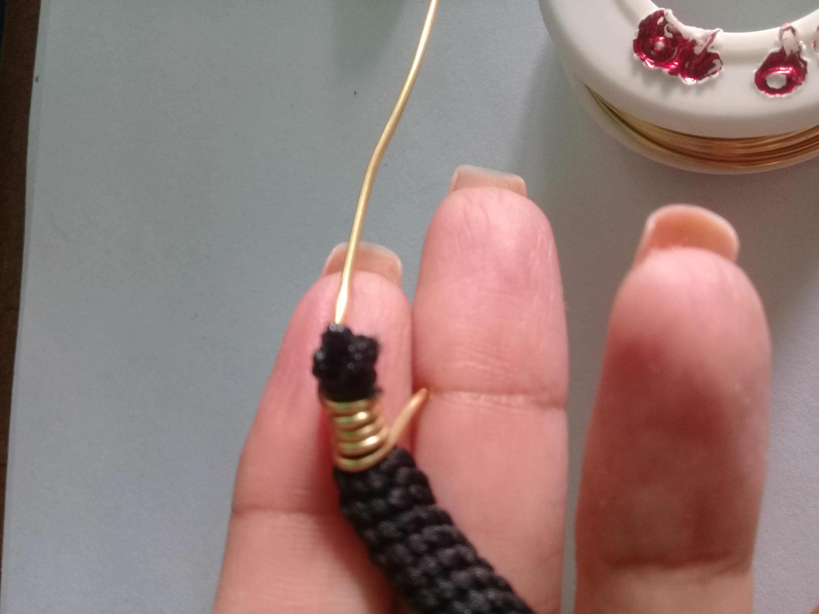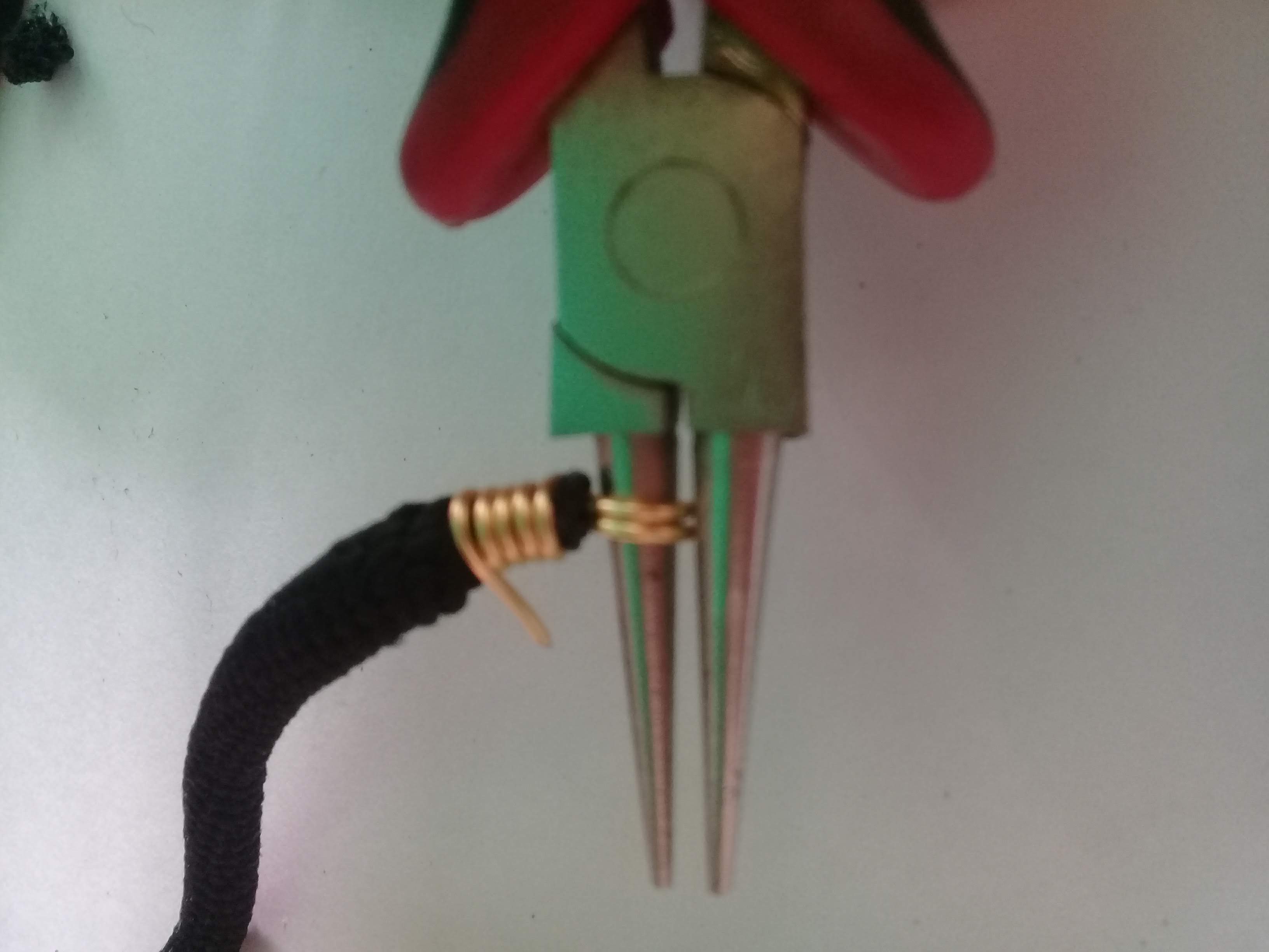 Vamos a quemar la punta del cordón y con el alambre #18 vamos entorchar la punta dando unas 5 o 6 vueltas