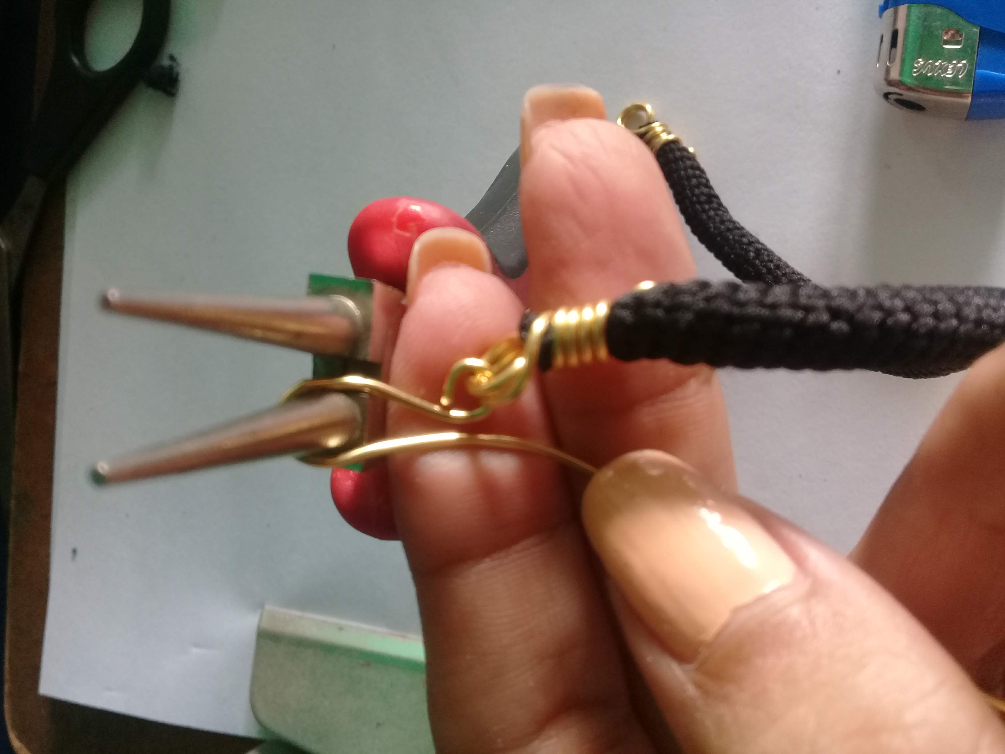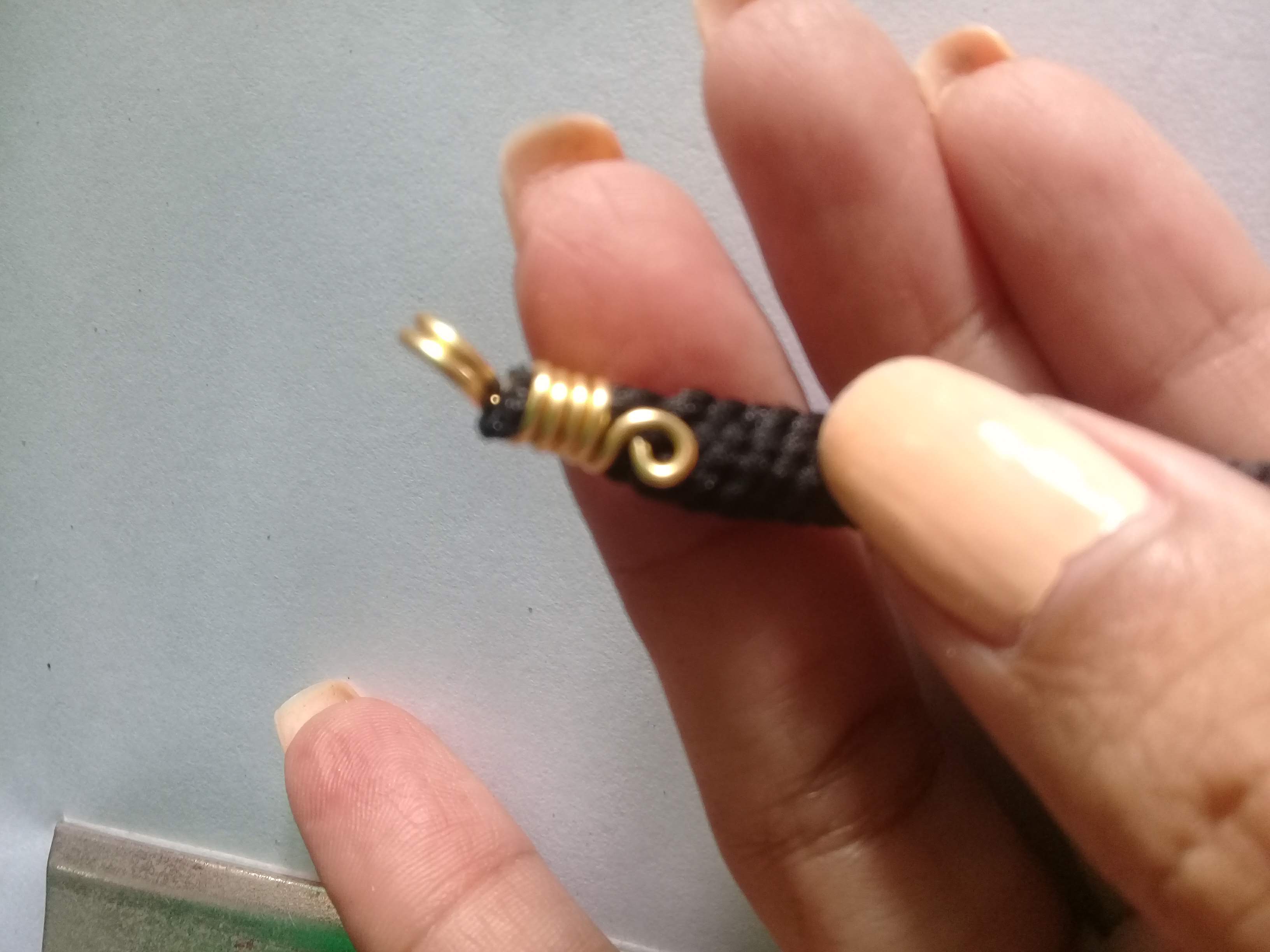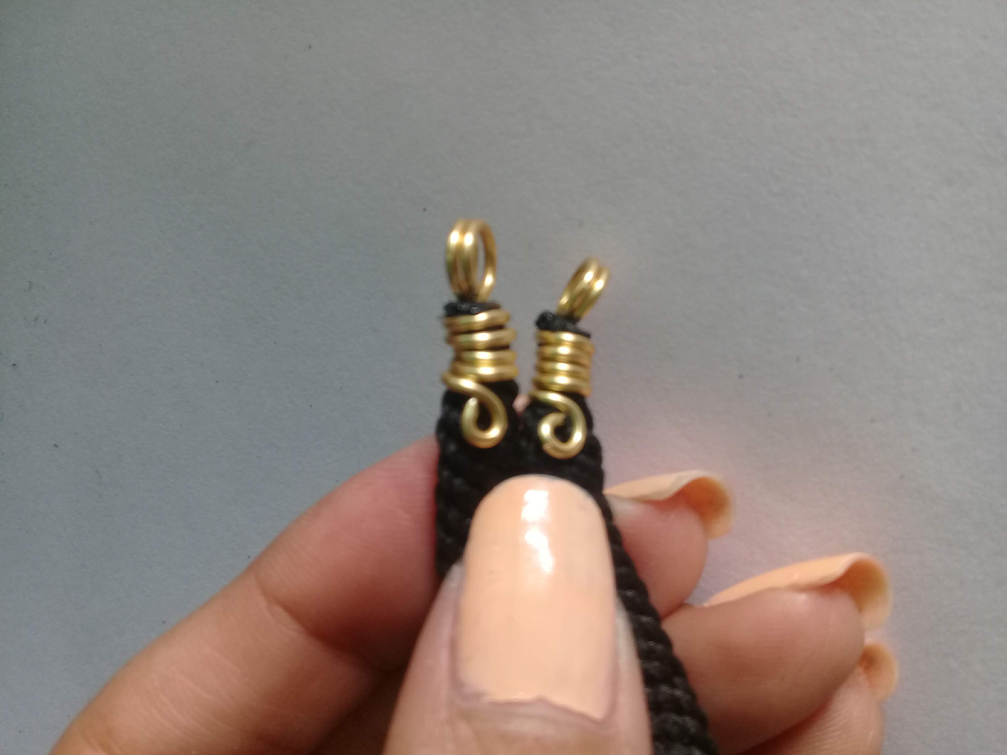 Antes de hacer lo mismo con ambas puntas colocamos el dije y luego cerramos las puntas.