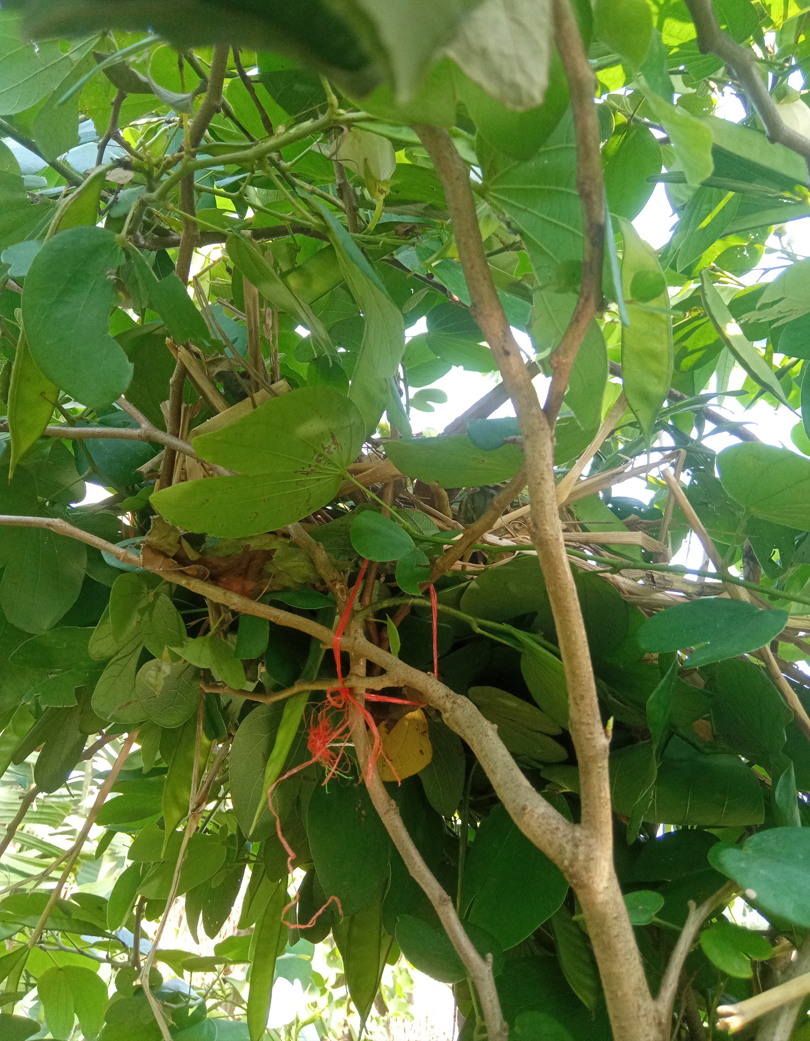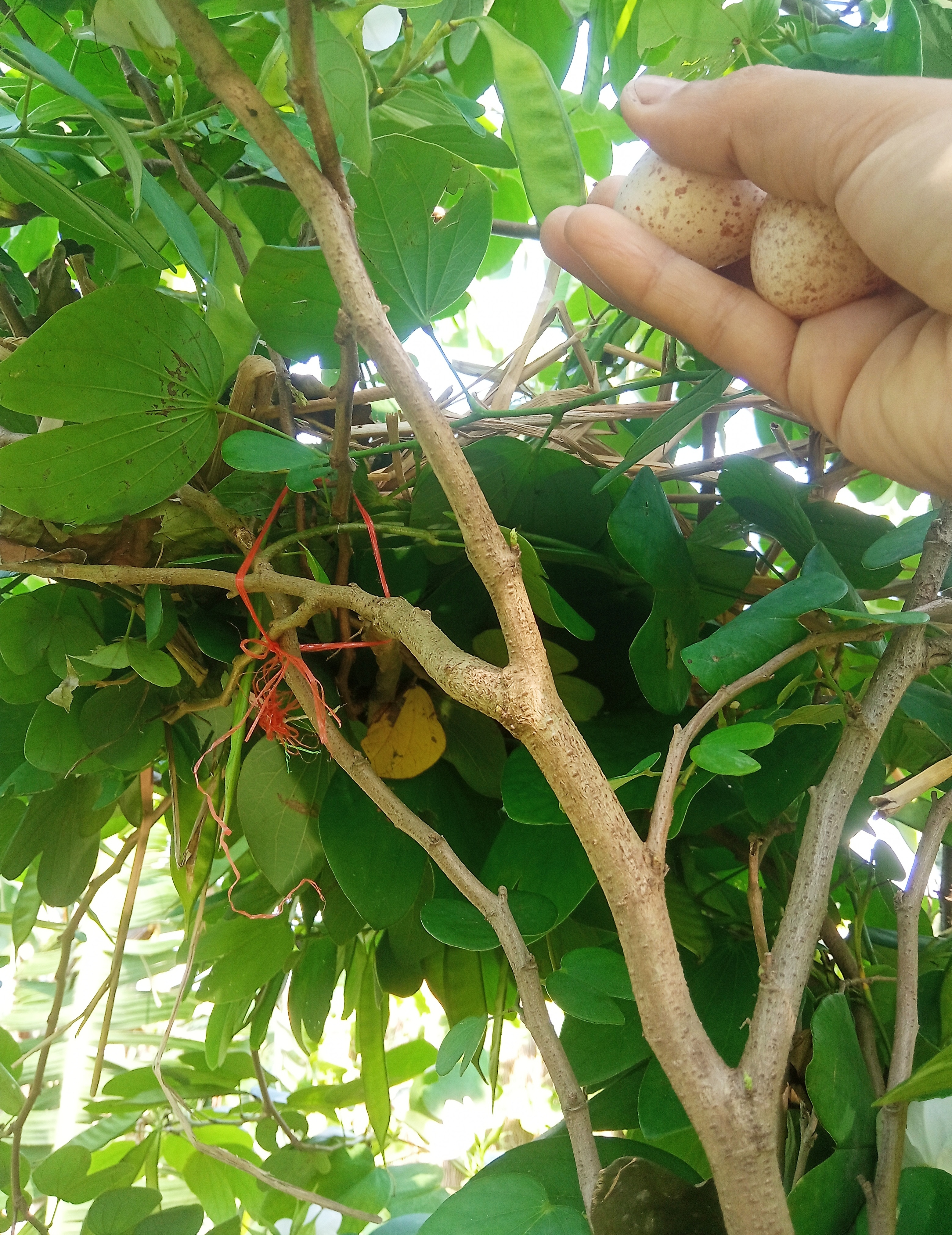 যাইহোক আমি এই নতুন বাসাটি জড়ো করার চেষ্টা করলাম, আমি বাড়ি থেকে ব্লেড ও দড়ি নিয়ে গেলাম ভাঙা পাখির বাসা কোনোরকম ঠিক করে ডিম দুটি রাখার জন্য।তারপর কিছু ডাল জড়ো করে দড়ি দিয়ে বেঁধে দিলাম।তারপর পুরোনো জবা ফুল গাছের বাসা ও নতুন ভেঙে পড়া বাসা জড়ো করে ঠিক করার চেষ্টা করলাম।তারপর কাঞ্চন ফুল গাছের মধ্যে বসিয়ে দিলাম বাসাটি, সঙ্গে ডিম দুটিও রেখে দিলাম।তবে জানি না, ডাহুক পাখি আবার এই ডিমগুলোতে বসে তা দেবে কিনা?সে এগুলো এভাবে দেখে খুশি হবে কিনা?তবে বেশ তৃপ্তিদায়ক মুহূর্ত ছিল এটি আমার জন্য।।