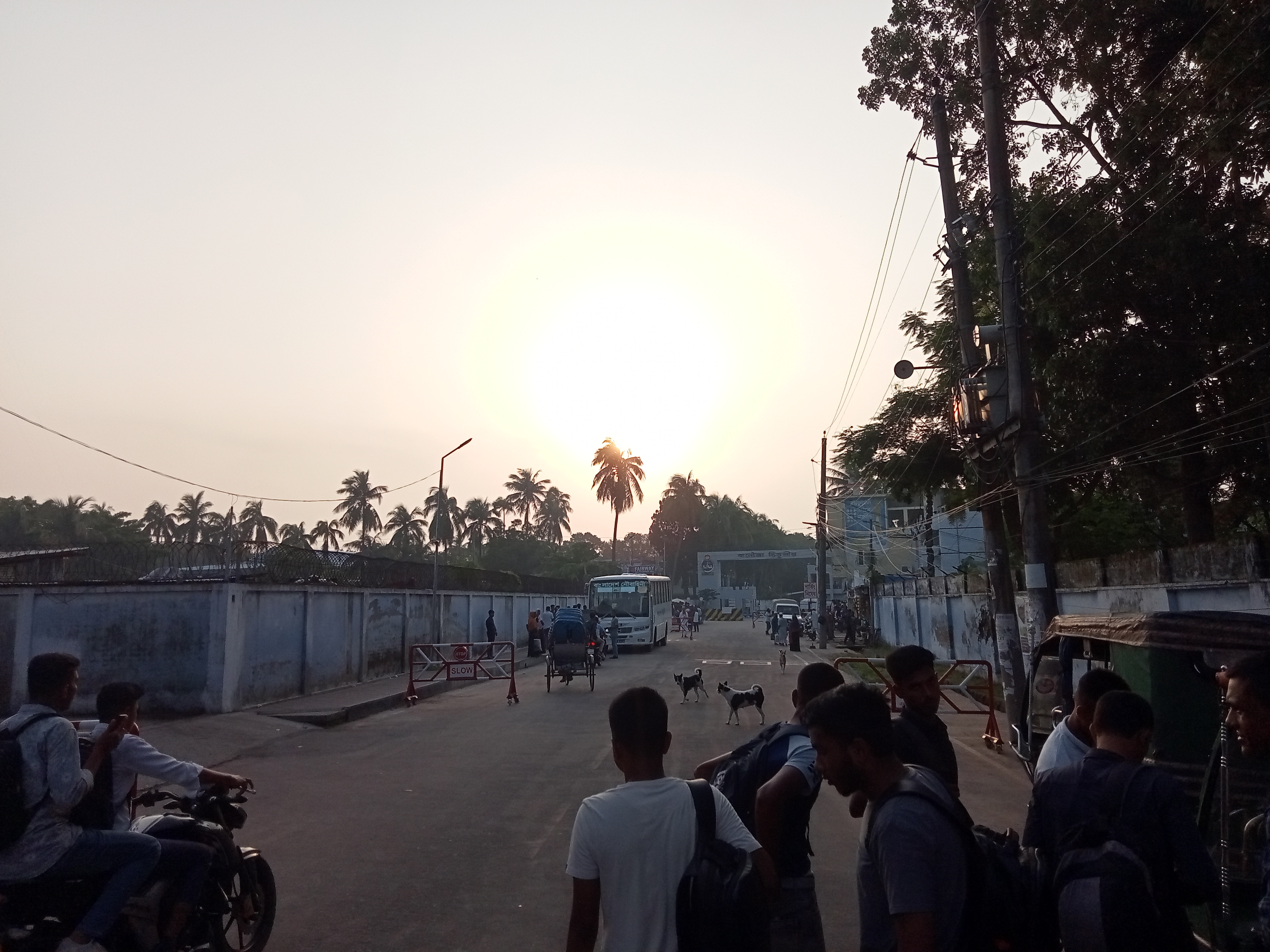 এবার আমরা হোটেল থেকে বাইরে এসে রোডে দাঁড়িয়ে থাকলাম। ঐদিন ছিল আমাদের নৌবাহিনীর মাঠ। তাছাড়া আমার খুব ডিফেন্সে জব করার শখ। তবে আমাদের মাঠ ছিল সকাল ৮:০০ টায় । তাই আমরা খুব সকালেই রেডি হয়ে বের হয়েছিলাম। কেননা মাঠে দেরি হলে সমস্যা আছে। তাই আমরা খুব সকালে রেডি হয়ে বাইরে এসে অটোর জন্য ওয়েট করেছিলাম। আমরা মাঠের থেকে অনেকটা কাছে ছিলাম যে কারণে আমার একটা অটো গাড়ি ভাড়া করলাম। আমাদের বলল চারজন আছো তোমাদের 120 টাকা দিলে আমি তোমাদের মাঠে পৌঁছে দিব। এদিকে মাঠ আটটায় আমরা অলরেডি সাতটার সময় বের হয়ে পড়েছি। তাছাড়া মাঠে আগে উপস্থিত হওয়া খুবই ভালো। তো আমরা ১২০ টাকা ভাড়া দিয়ে একদম আমাদের গেটের সামনে নামিয়ে দিল। সেখানে নেমে আমরা যেহেতু আগে থেকে নাস্তা করেছে ছিলাম না। তাই আমরা সেখানে নেমে পাশে দোকান থেকে কলা পাউরুটি খেলাম। এরপরে আমরা সামনের দিকে অগ্রসর হলাম। উপরের ছবিটি তোলা হয়েছে যখন অটো থেকে নামি তার কিছুক্ষণ আগে।