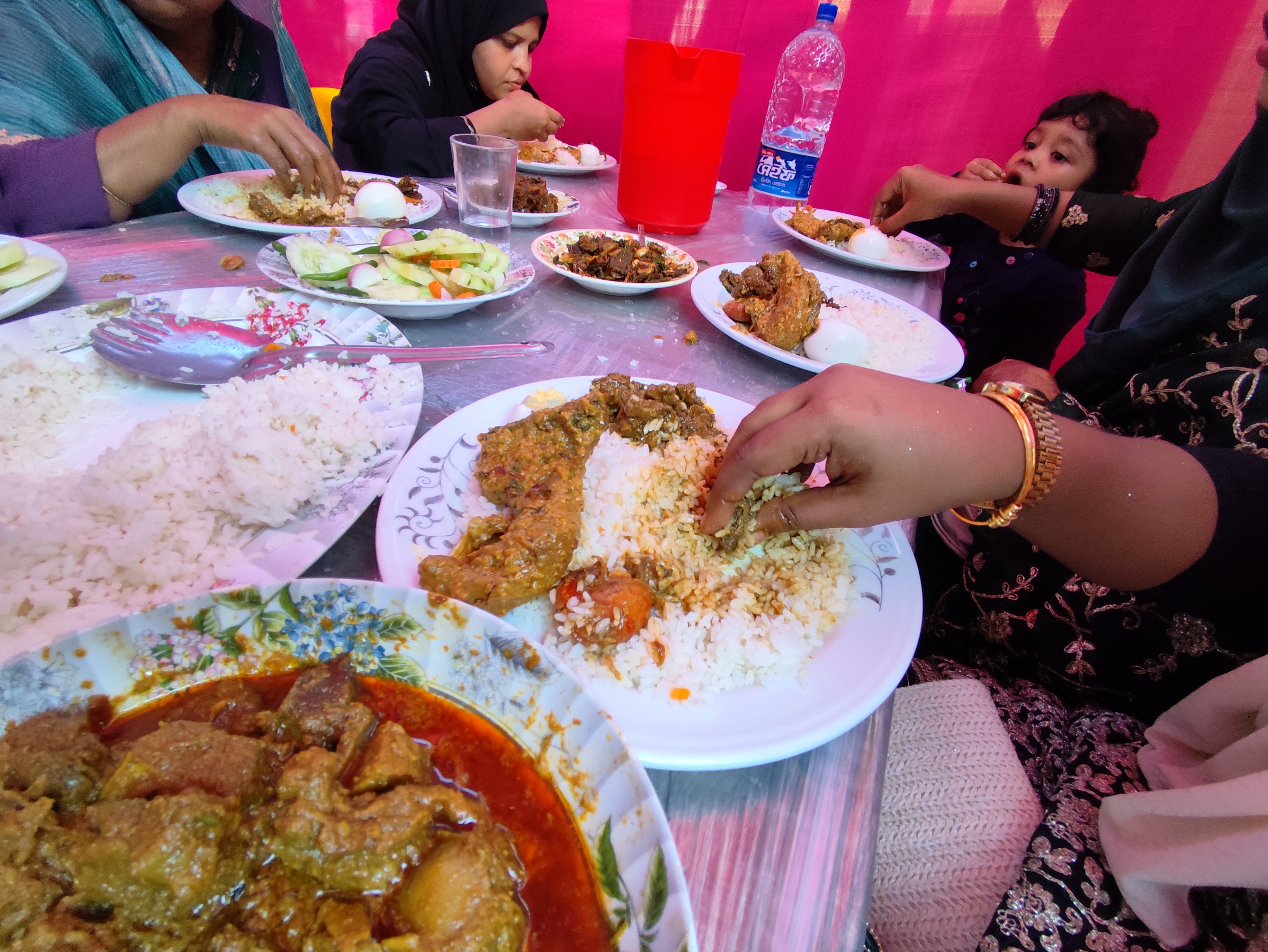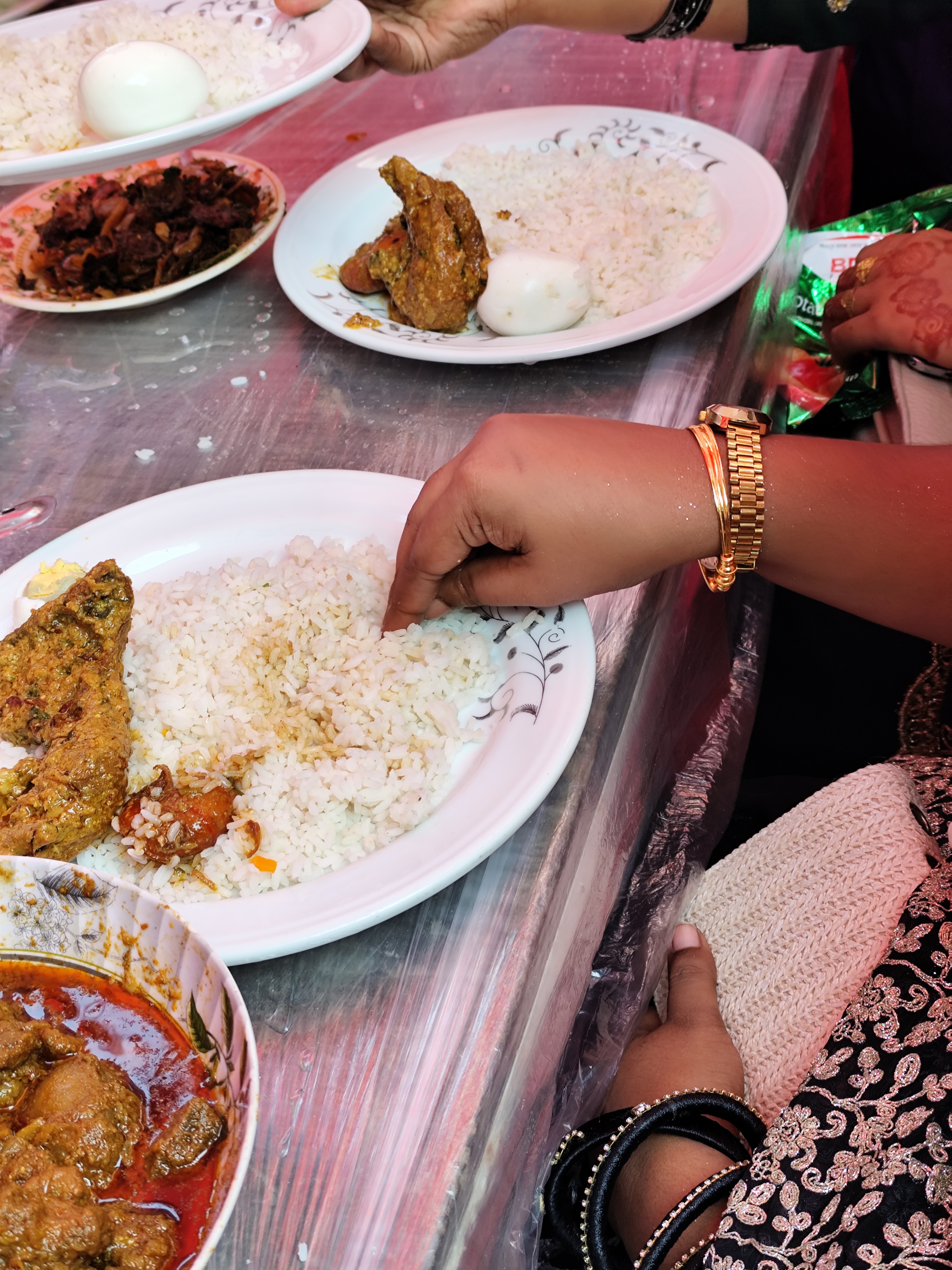 সম্পর্কে ভাগ্নি হলেও তার সাথে আমার ভালো সম্পর্ক এবং যেকোনো কথা তার সাথে শেয়ার করি। এরপর আমরা যখন একসাথে বসলাম এবং খাওয়া-দাওয়া যখন দিল আমরা সুন্দর মতে একে অন্যকে দিতে লাগলাম। এবং সুন্দর করে খাওয়া দাওয়া করতে লাগলাম। তবে আমার হাজব্যান্ড আমার মেয়েকে নিয়ে দাঁড়িয়ে ছিল। যদিও আমি আর আমার হাজবেন্ডের বড় ভাগ্নি একসাথে বসলাম এক পাশে। এবং আমরা দেখে শুনে খাওয়া দাওয়া করলাম। সত্যি বলতে খাওয়া দাওয়া করতে অনেক ভালো লাগলো। তবে আমি চিংড়ি মাছ খেতে অনেক পছন্দ করি। আর চিংড়ি মাছ খেতে আমার কাছে এমনিতে ভালো লাগে।