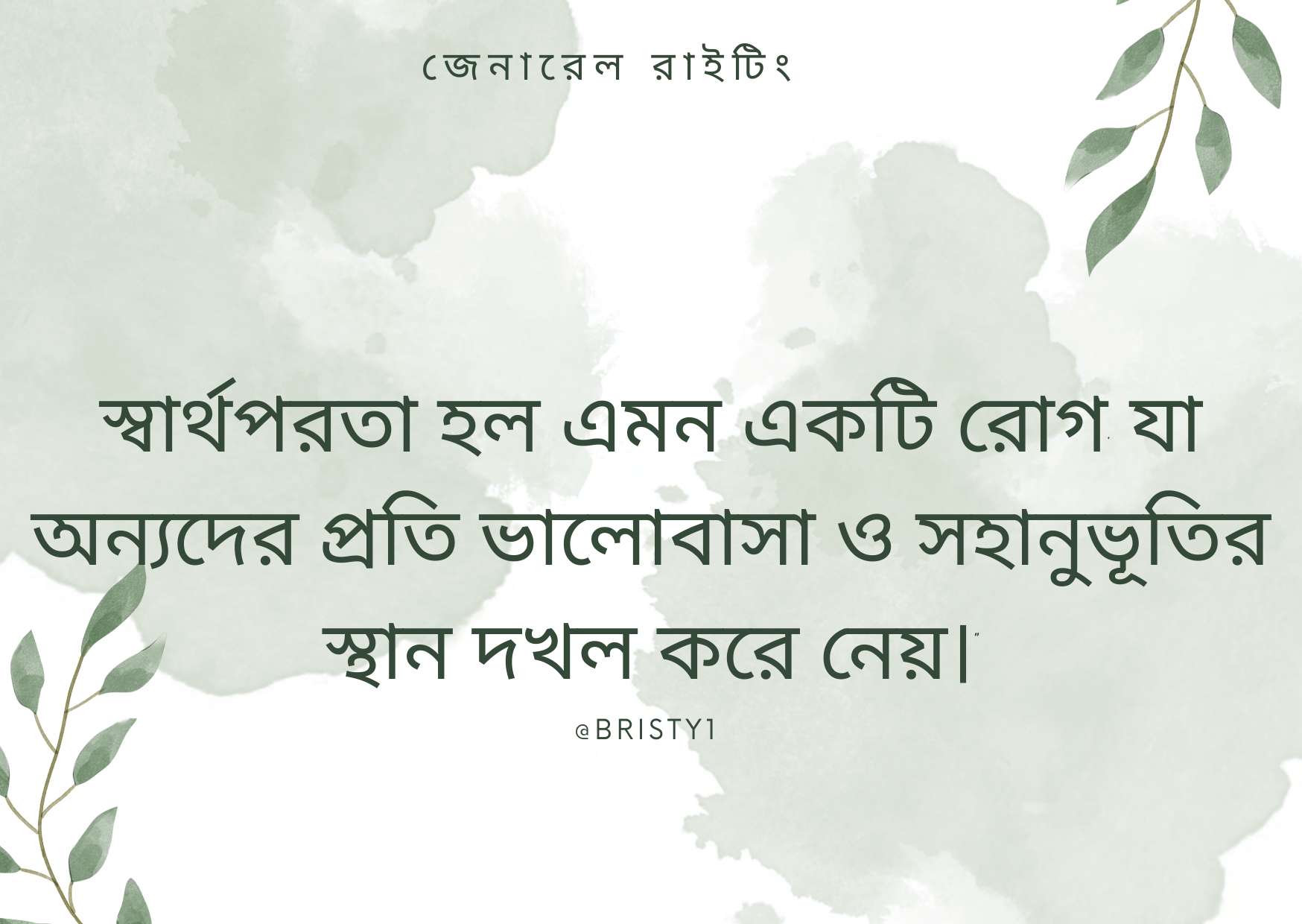 তবে, একে অপরের প্রতি সহানুভূতি ও ভালোবাসা একটি দারুণ সম্পর্কের জন্ম দেয়। আমরা যদি নিজেদের স্বার্থের বাইরে গিয়ে অন্যদের জন্য কিছু করি, তাহলে পুরো সমাজে ভালোবাসা, সহযোগিতা ও শান্তির পরিবেশ তৈরি হতে পারে। মানুষের মধ্যে খাঁটি ভালোবাসা ও সহানুভূতির চর্চা সমাজকে সঠিক পথে পরিচালিত করতে পারে। আসলে, স্বার্থপরতা যদি রোগ হয়, তাহলে ভালোবাসা ও সহানুভূতি হলো তার প্রতিষেধক।