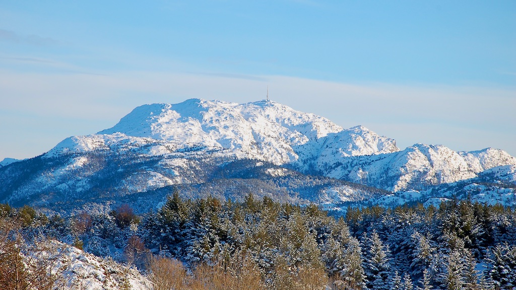 Siggjo, which is the highest mountain on Bømlo, appears here in the winter suit.