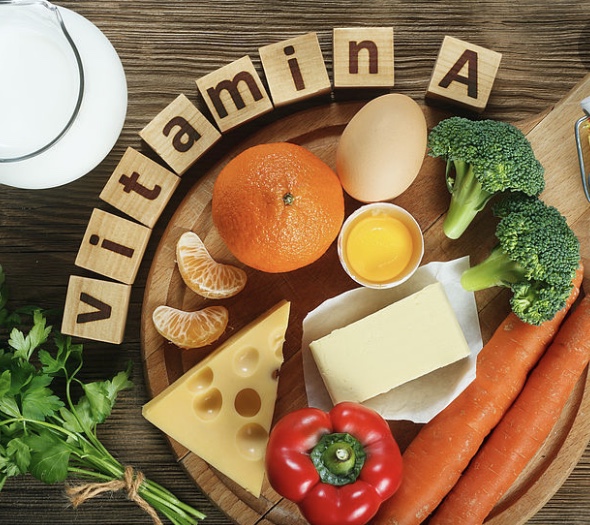 Vitamin A gehört ( wie auch Vitamin D,E und K ) zu den fettlöslichen Vitaminen. Enthalten ist es in tierischen Lebensmitteln. In pflanzlichen Lebensmitteln ist es in Form der Vorstufe Beta-Carotin enthalten.