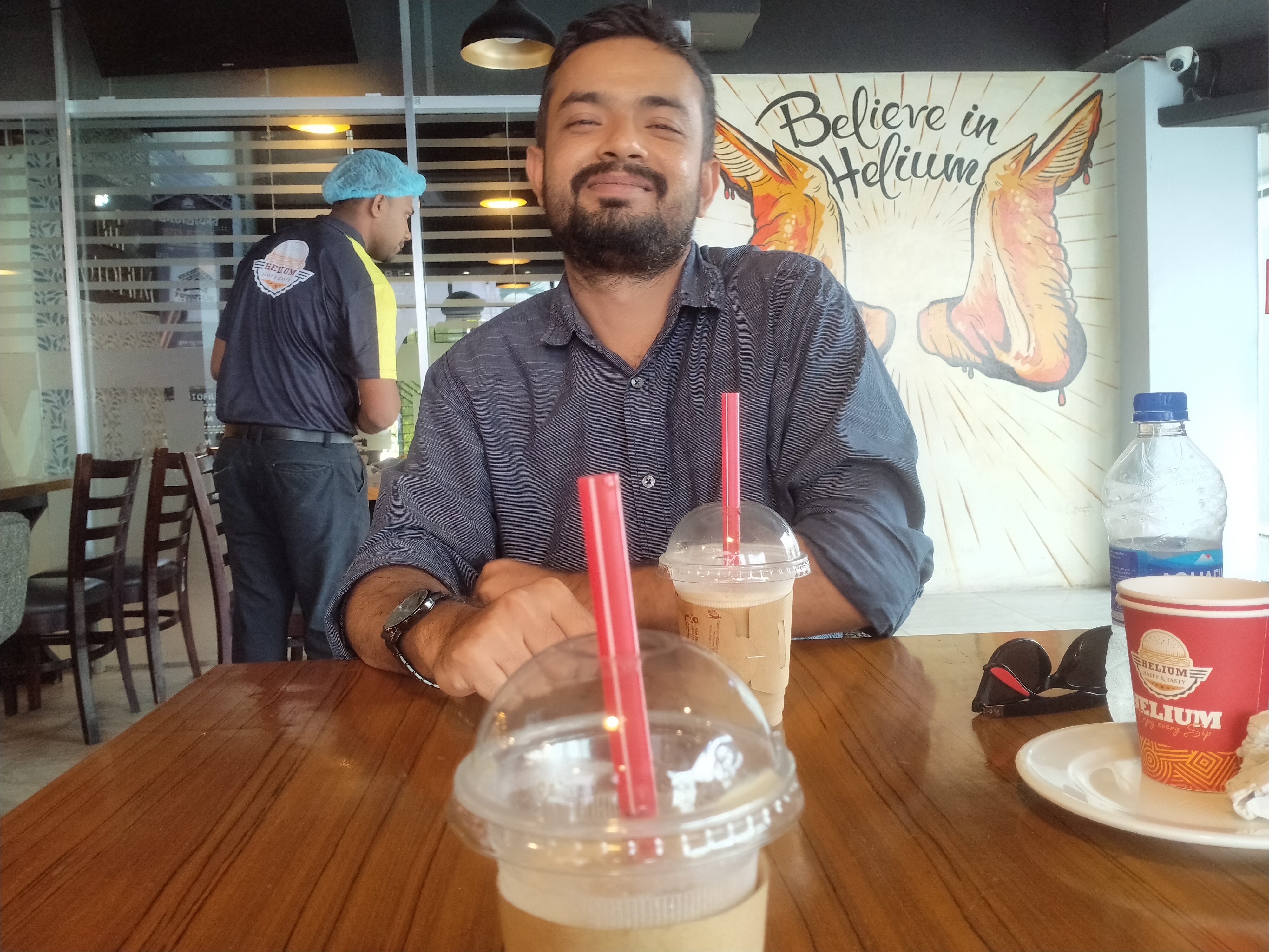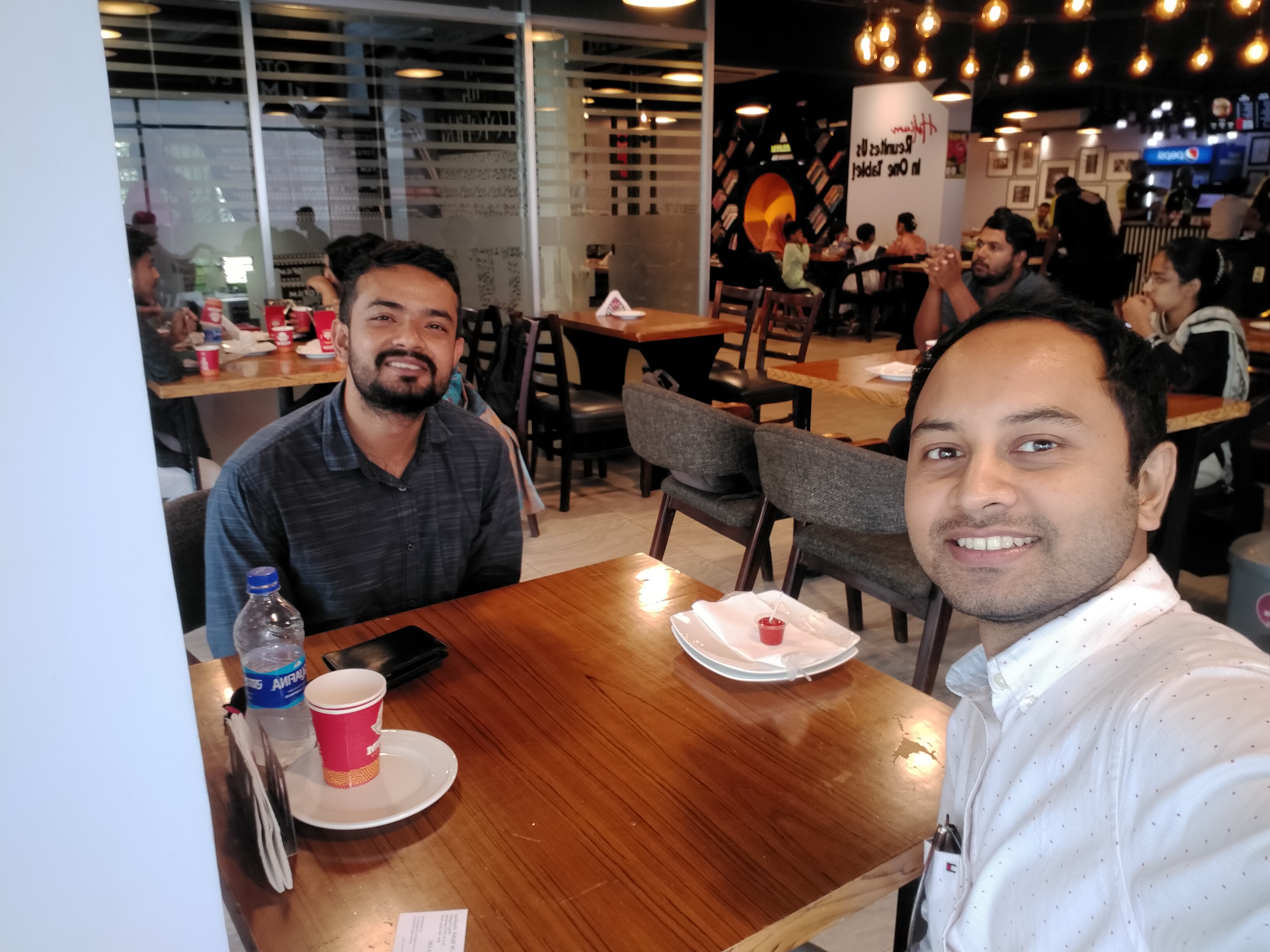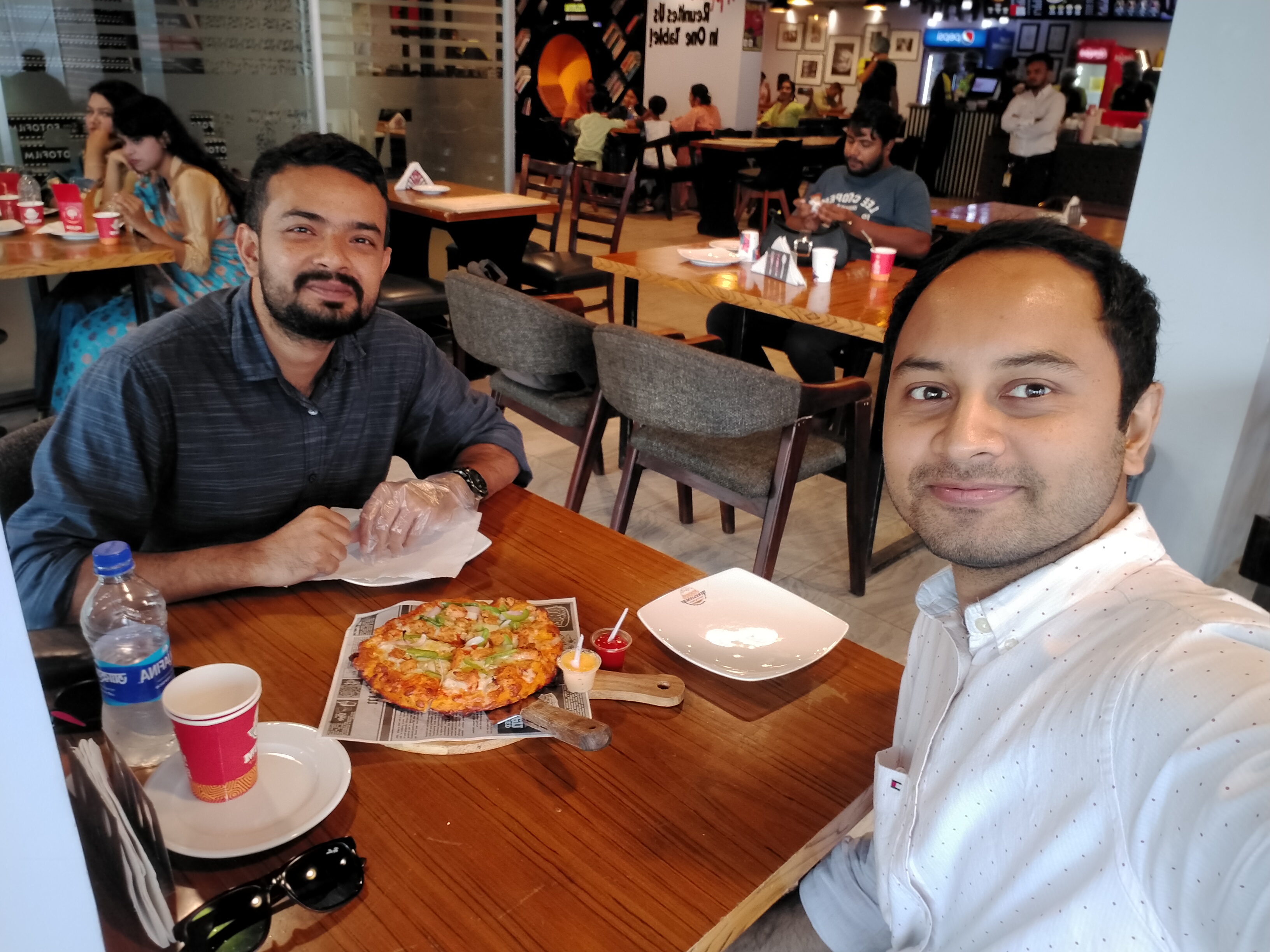 তিন বছর পর আপনার আর আপনার এক বছরের জুনিয়র ভাই রাবিবের দেখা হয়েছে দেখছি। ভারী কিছু খাবার প্ল্যান না থাকলেও শেষ পর্যন্ত কোল্ড কফির সাথে মিনি পিজ্জাও নিয়ে নিলেন দেখছি আপনারা। তবে পানের সাইজ এত বড় যে , রাবিবকে পিজ্জার মতো কামড়ে খেতে হচ্ছিল, হি হি হি। ৩০০ টাকা পানের দাম!