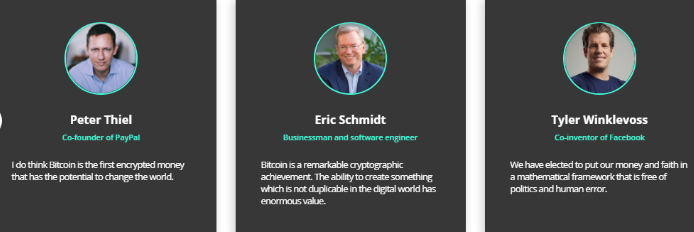 Viele von Euch müssen diese Leute kennen. Aber kurz gesagt, Peter Thiel-ist Mitbegründer des Zahlungssystems PayPal. Eric Schmidt-arbeitete in vielen Positionen in den USA, war auch (vielleicht) ein Mitglied des rates für Technologie unter dem US-Präsidenten. Tyler Winklevoss-ich denke, Sie sollten es genau wissen, zumindest aus dem Film «Social Network» (ein Film über das soziale Netzwerk Facebook), und um ernst zu sein, ist er einer der Investoren im Projekt BitHub. Neben diesen Jungs, noch im Team gibt es Paul Buckhead, der ein Entwickler von Gmail ist, und viele andere Menschen, die in Technologie und Wissenschaft verrückt sind, und die glauben, dass unsere ganze Zukunft hinter der digitalen Technologie ist.
