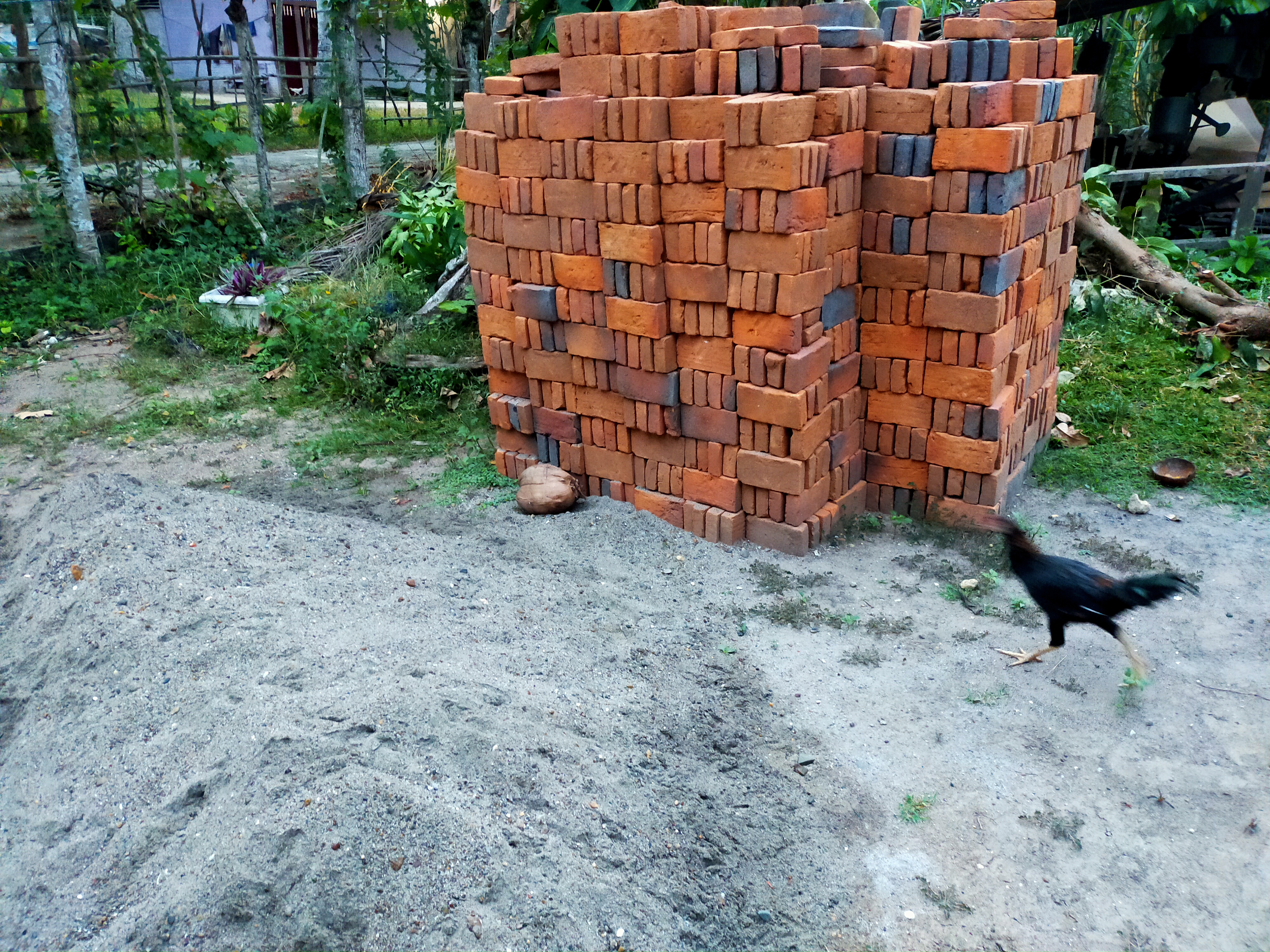 We can see here the red bricks are ready to be used as one of the building materials and the building is a house that I will build.