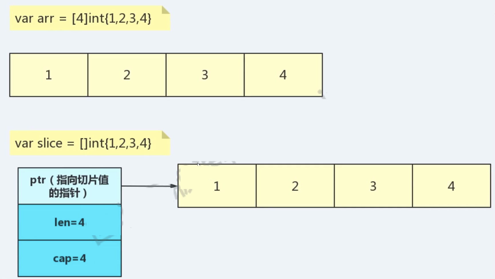 其中reflect包中的SliceHeader是对外的,可通过reflect包访问,而runtime包下的slice则是内部使用的,两者都能表达slice的内存布局结构。