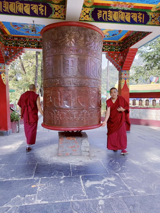 সিকিমের Enchey Monastery, এটি একটি বৌদ্ধদের গুম্ফা । "ওঁম মণিপদ্মে হুঁম" বৌদ্ধ লামাদের মহা মন্ত্র খোদাই করা মহা জপযন্ত্র ।