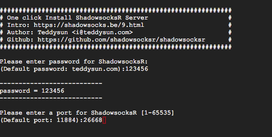 wget --no-check-certificate https://raw.githubusercontent.com/teddysun/shadowsocks_install/master/shadowsocksR.sh && chmod +x shadowsocksR.sh