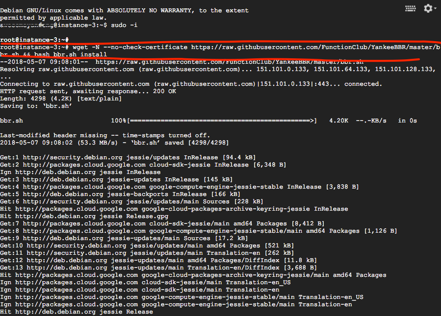 wget -N --no-check-certificate https://raw.githubusercontent.com/FunctionClub/YankeeBBR/master/bbr.sh && bash bbr.sh install