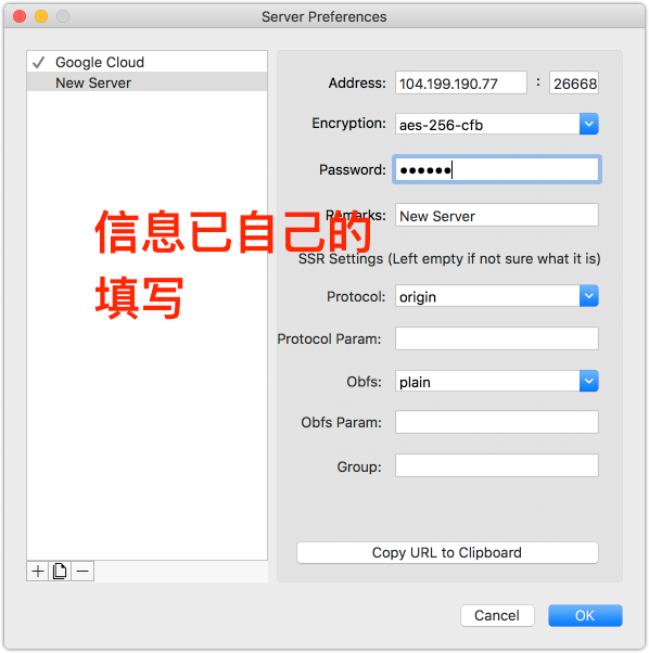 下载安装后,进入Server Preferences,根据之前保存的信息配置