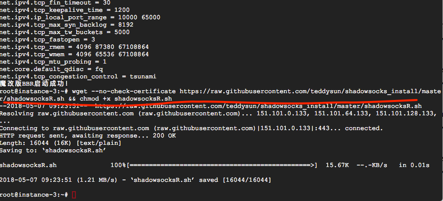 8.程序跑完后,输入下面命令拉取shadowsocksR脚本