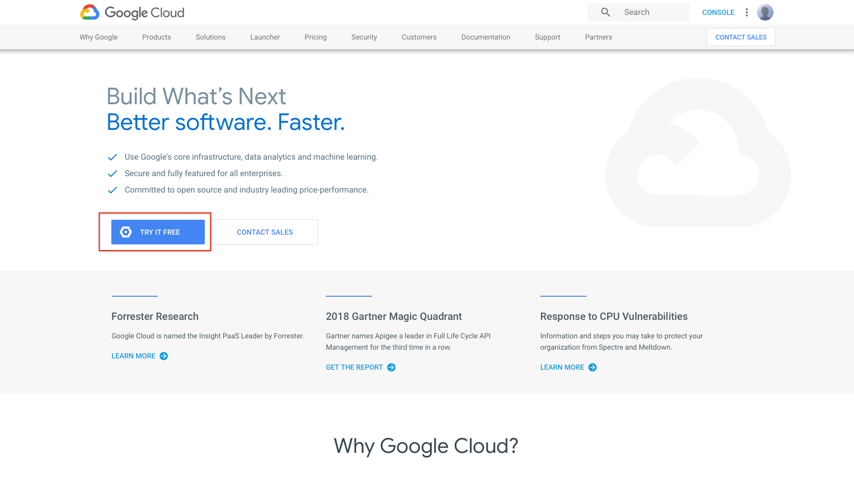 当你注册了一个Gmail的帐号后,就可以到GC的网站了https://cloud.google.com,登录后大概如下图: