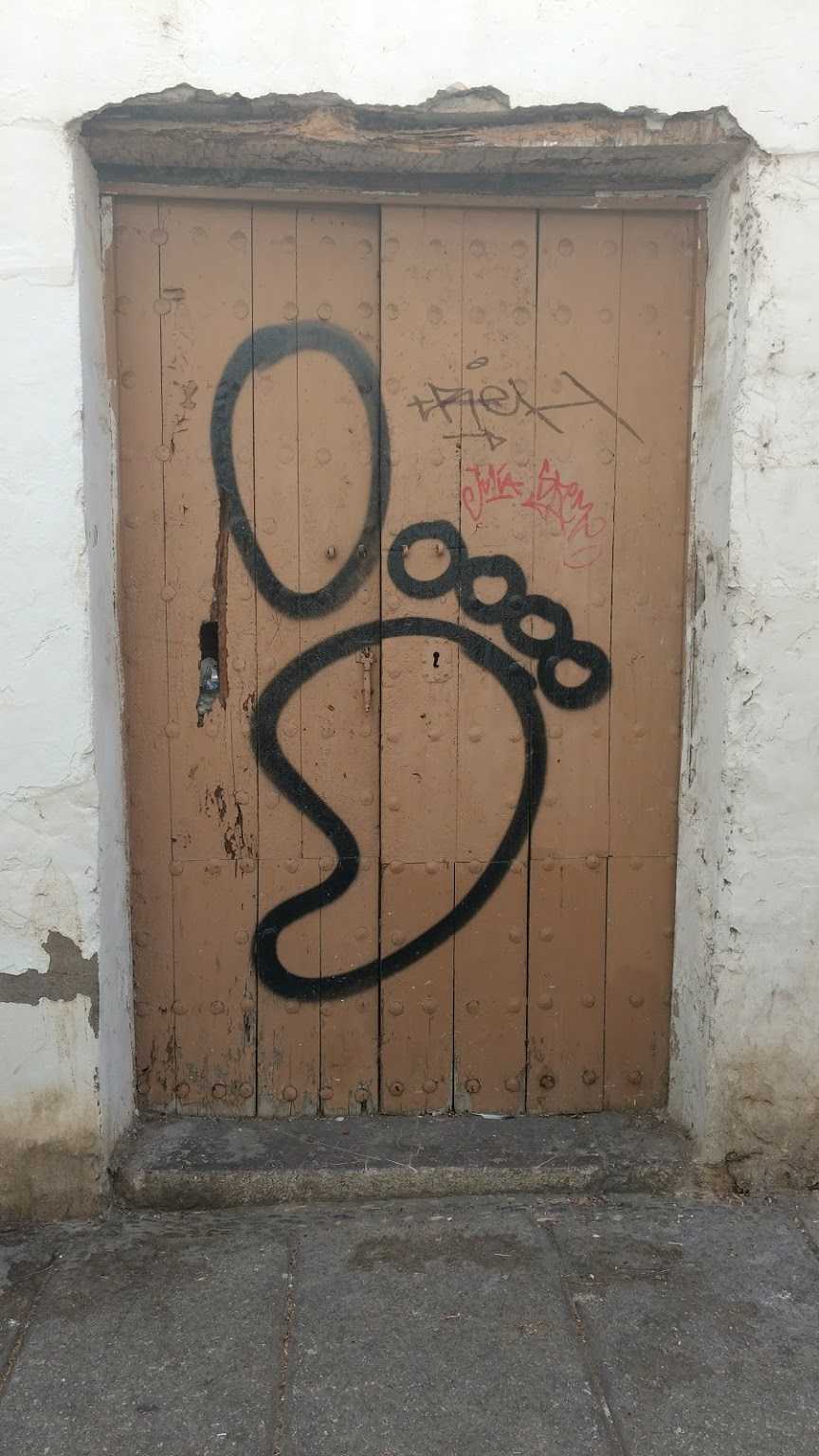 doors can be great photographic subjects indeed! The shot is not cropped, the door is HUGE and fitting the whole frame you wouldn't really be able to recognize the googly trophy anymore.