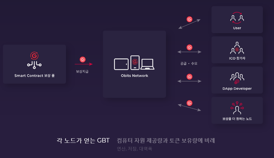 컴퓨터 자원의 구매자는 기존 서버를 구축하거나 유지하는 비용보다 저렴하게 GBT를 사용해 Orbits Network를 이
