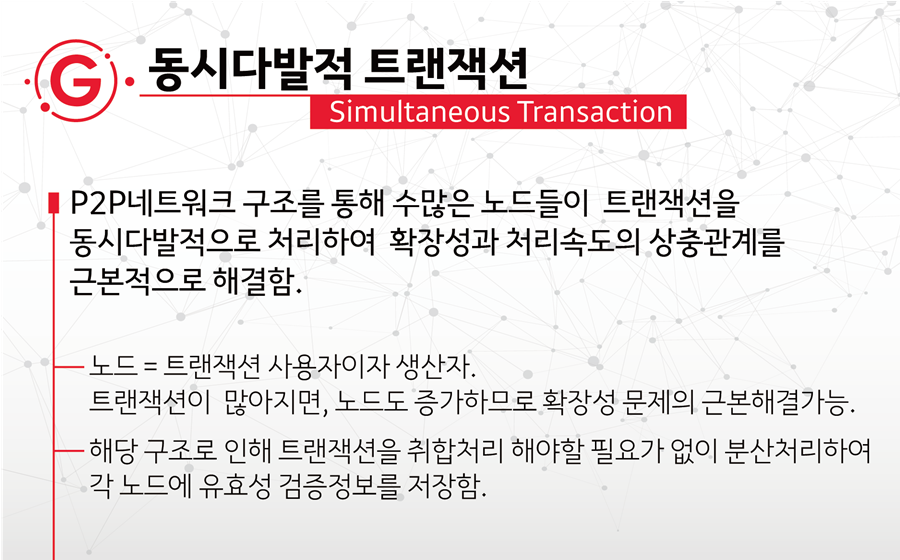 그래비티는 수 많은 블록체인 비즈니스를 모바일 환경에서도 손쉽게 구현할 수 있도록 도와주는 퍼블릭 블록체인 입니다. 그래비티의 Orbits Network 는 그래비티의 분산화된 메인넷으로 유/ 무선으로 연결된 컴퓨터 유휴자원을 공유하여 진정한 분산화 P2P 네트워크를 구축하고자 한다고 하며, Orbits Network 의 트랜잭션은 동시다발적으로 빠르게 처리할 수 있고, 거래내역은 Genesis Hoisting 기술을 활용하여 효율적으로 관리된다고 합니다. 또한, 스마트 컨트랙트 및 소스 파일은 분산 저장 기술과 Defrag Function 기술을 통해 부분적으로 나뉘어 각 노드에 저장되고, 필요할 때마다 각각의 부분을 호출하여 스트리밍 형식으로 실행할 수 있습니다.