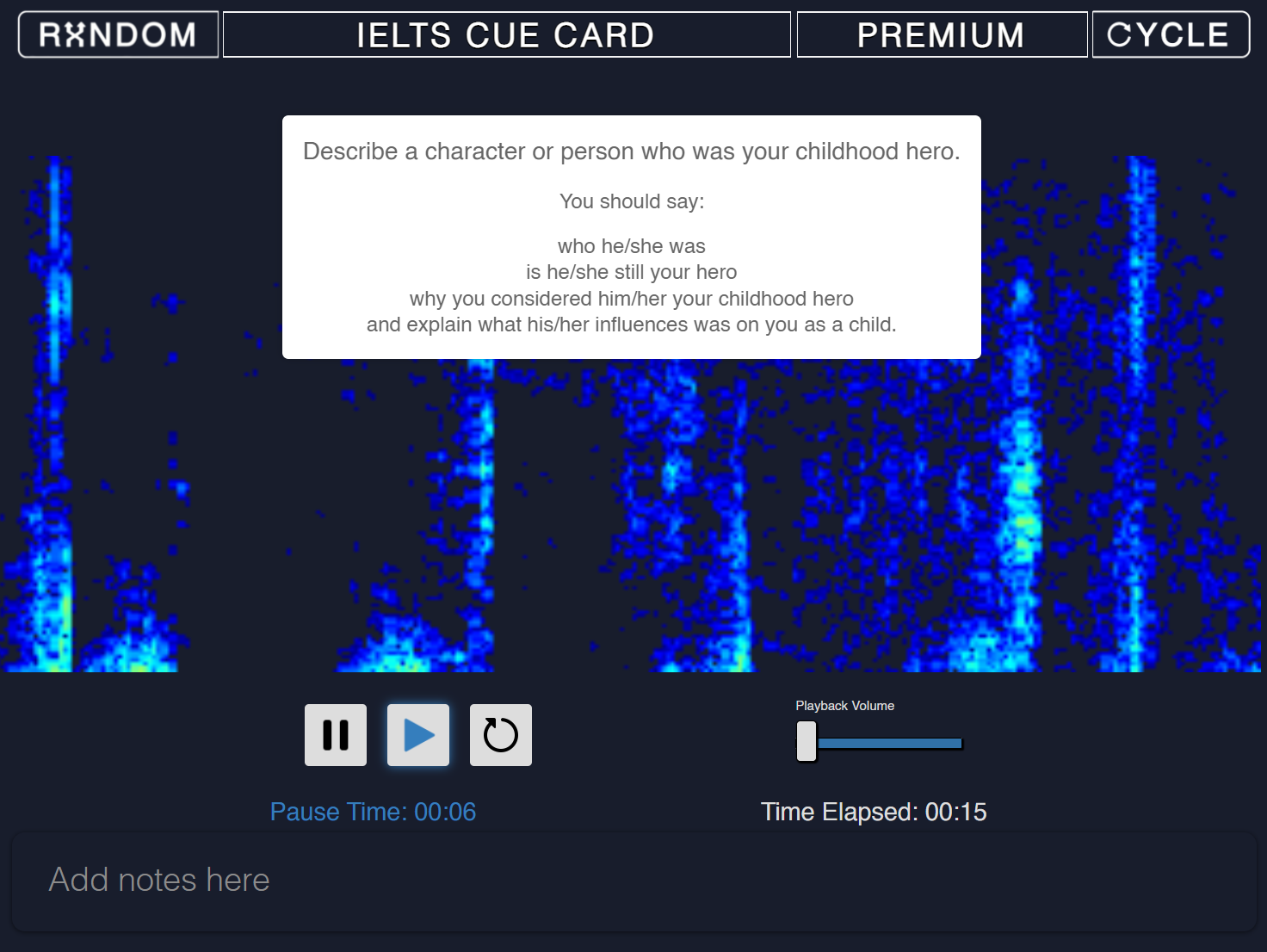 "RANDOM" button is located atop on the right and generates a random activity per page from all 30 types in random order. Each task is assigned a “weight” - a coefficient which defines how often a particular activity type should be repeated. For example, “random questions” activity has a high rate of occurrence, since there are thousands of questions within this activity, while “random advert” activity has fewer variations, and, considering its specificity, is designed to be displayed as infrequently as possible. Usage of the “random” button is suitable during continuous practice when the aim is not to work on all possible activity types available, but on the most methodologically and didactically valuable in each individual case. With “RANDOM” script it is possible to click on the title of the activity - the button between “RANDOM” and “CYCLE” buttons in order to generate the same activity over again. For example, it is possible to generate only Random IELTS cue card activity by clicking on the button “Random IELTS cue card” button at the top of the webpage. If a particular activity is undesirable at a certain time of practice or overly repetitive, it is recommended to simply skip this activity and load another.