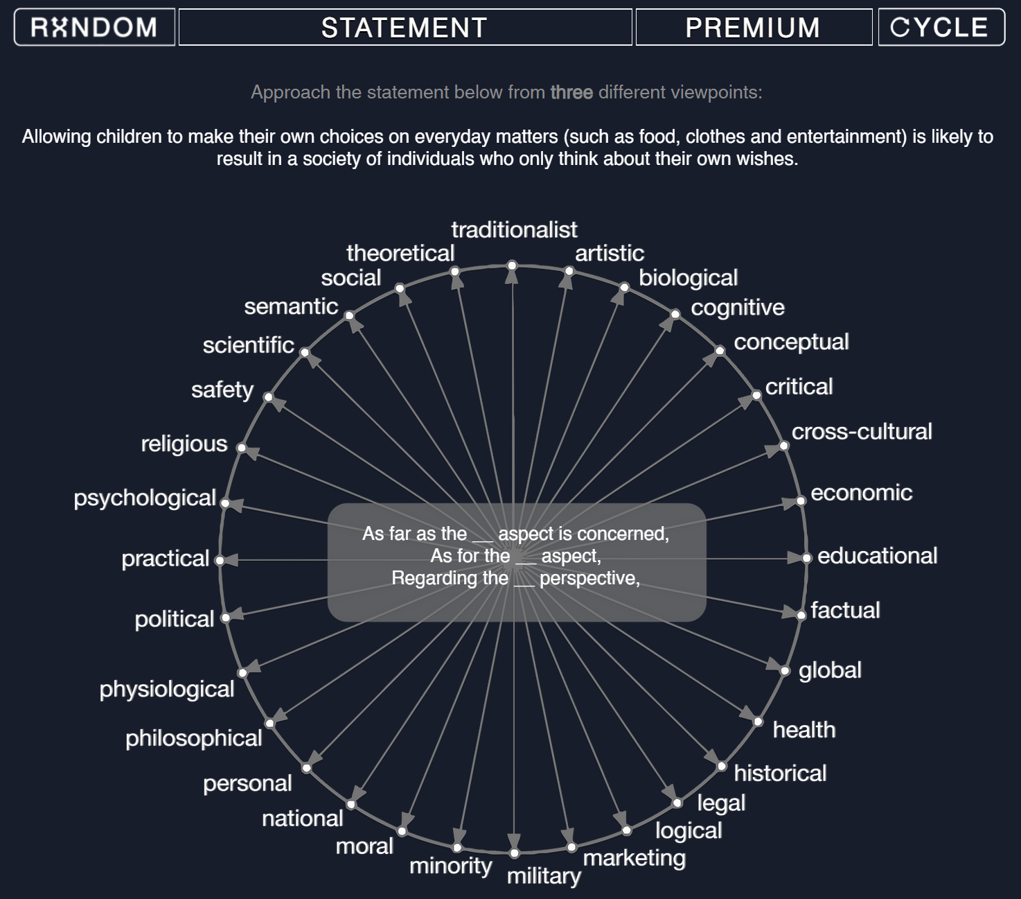 It presents randomized tasks in 30 types of activities aimed both at students and teachers of English as a Second Language, seeking out offbeat and extravagant tasks that incorporate Integrative Thinking elements. Grandomastery.com provides two main randomization options - "CYCLE" and "RANDOM". This guide explains how to make the most out of grandomastery.com.