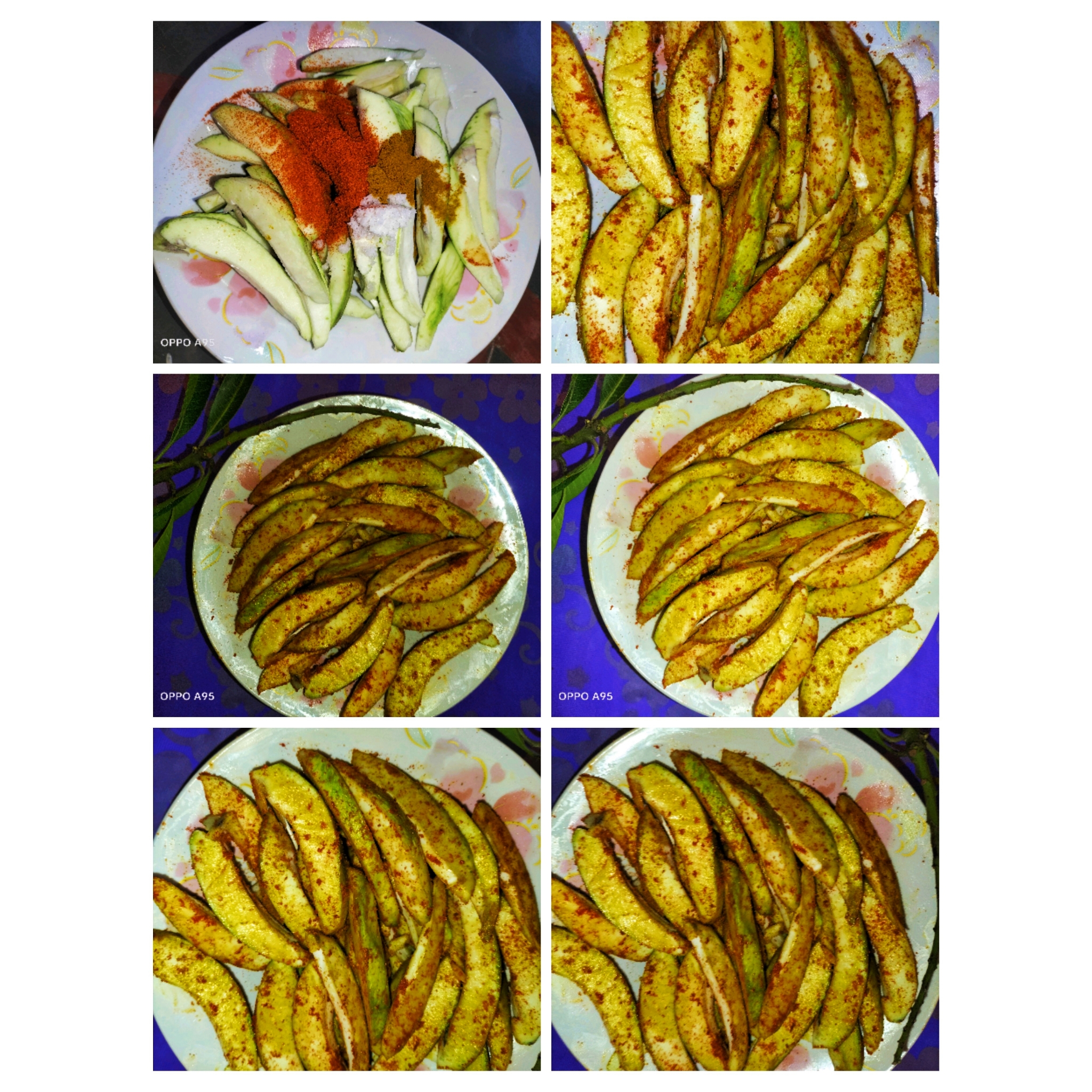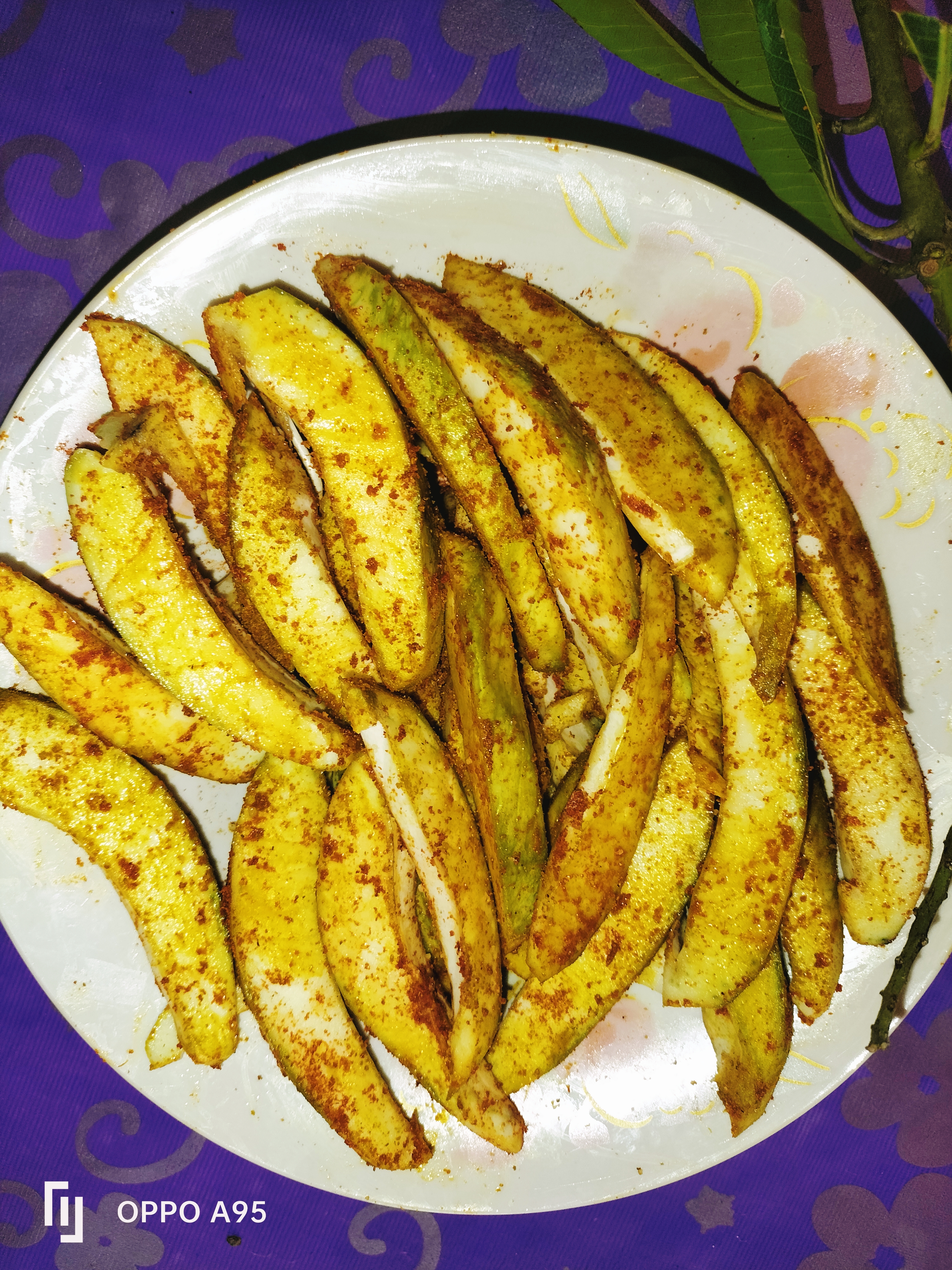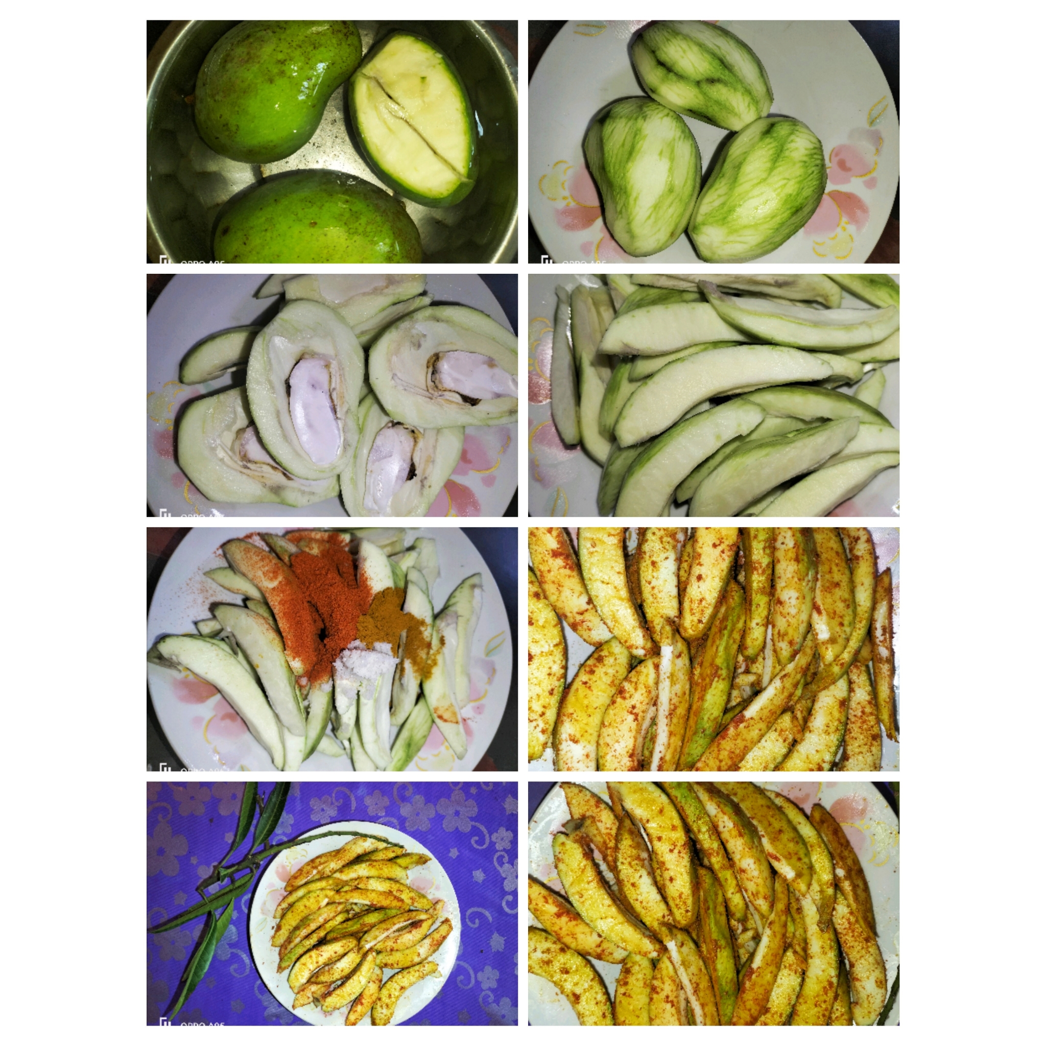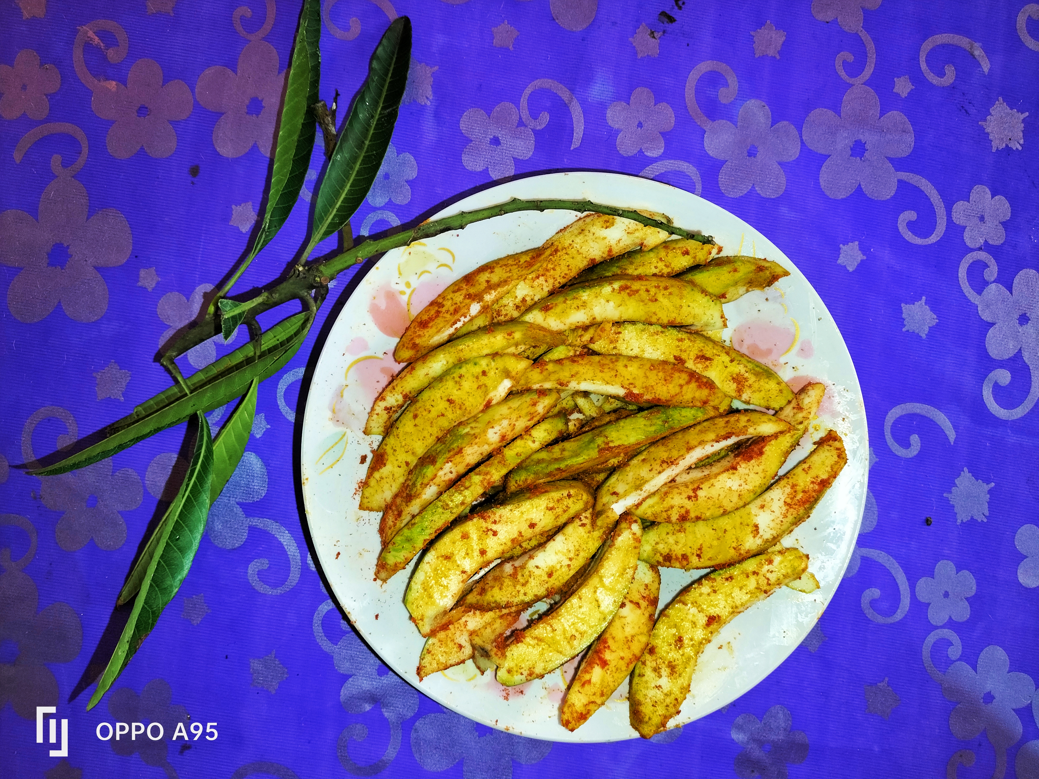 এখন লবন, হলুদ ও মরিচের গুড়া দিয়ে আম গুলো মেখে নিয়েছি। মেখে নেয়ার পর আরো বেশি লোভনীয় লাগছে।