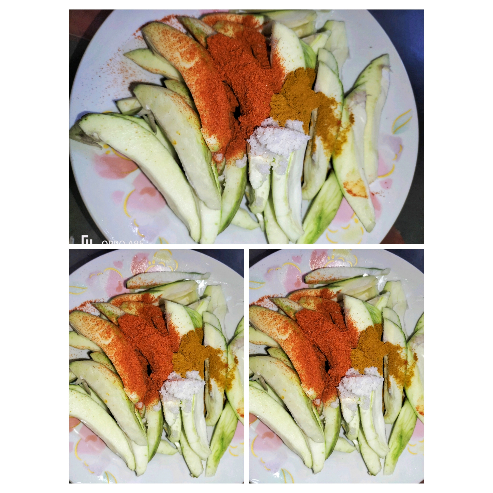 এখন কেটে নেয়া আম গুলোতে লবন, হলুদ ও মরিচের গুড়া দিয়েছি।
