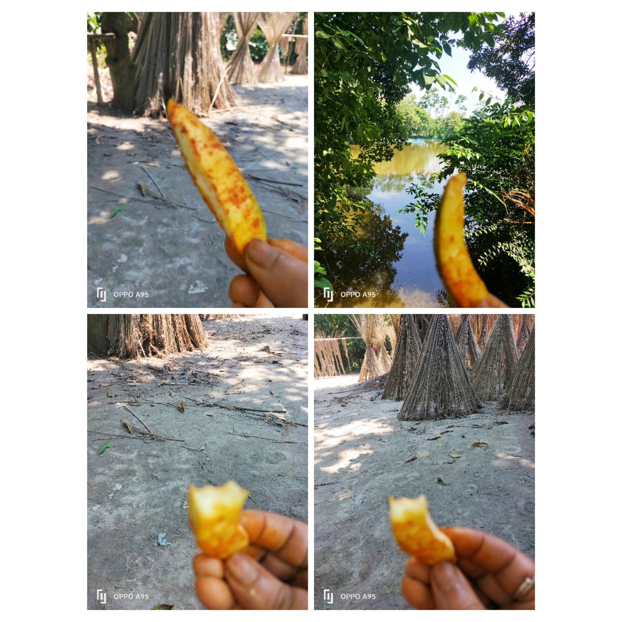 যে যেহেতু আমাদের বাড়ির কোটা দিয়ে আম পাওয়া যাচ্ছে না তা দেখে আমাদের বাড়িতে এক মহিলা পাট কাঠি রোদে দিচ্ছিলো ওনি বল্লেন আমার বাড়িতে আছে লম্বা কোটা। এরপর ওনি ওনার বাড়ি থেকে অনেক লম্বা কোটা এনে দিলেন এবং সেই কোরার মাথায় একটা অস্ত্র বেঁধে আম পাড়ালাম এবং একটা আমের এক সাইড একটু কেটে গেলো আরো দুটো আম পাড়লাম এবং আম মোট তিনটি পারলাম তবে ভাগ্য ভালো আম পারতে গিয়ে আহত হইনি। আম পাড়াও শেষ তখনি কোটার মাথায় যে অস্ত্র টি ছিলো সেটি নিচে পড়লো কোটার মাথা থেকে ভাগ্যিস মাথায় বা শরীরে পড়ে নি শরীরে পড়লে মাথা বা শরীর কেটে যেতো। যাই হোক এরপর আমি আম পেড়ে এনে কেটে মাখা করলাম আর তাই আজ আপনাদের সাথে ভাগ করে নেবো।