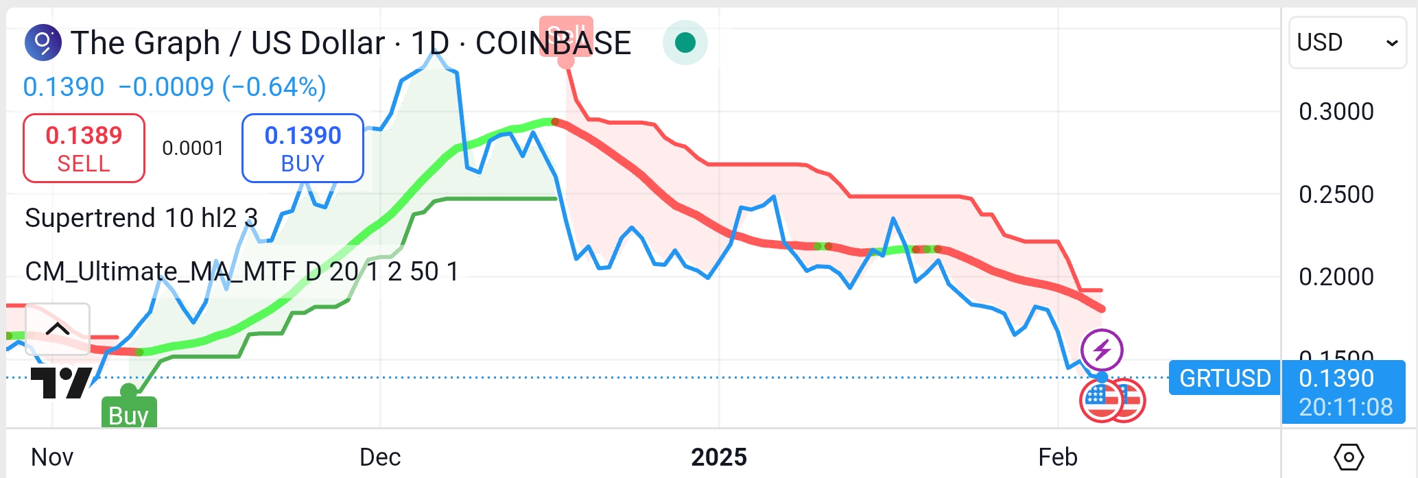 The current market trend, characterized by a bearish SuperTrend sell signal, might momentarily dampen bullish sentiment. However, this technical indicator should not deter investors from exploring the potential of The Graph. The SuperTrend, while a valuable tool, may not accurately predict the long-term trajectory of this innovative project.