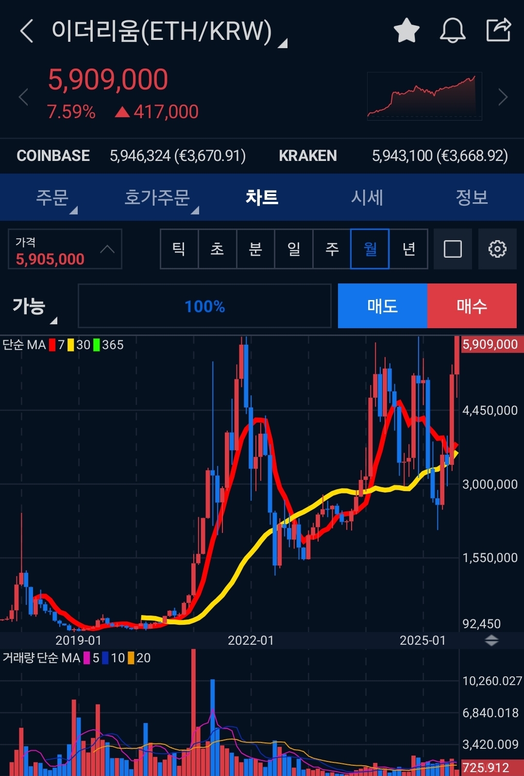 Now it has dropped a little bit. But it's a meaningful moment for altcoins 🤗 I guess ETH(Ethereum) price will break 2021 ATH(All Time High) in USD soon.
