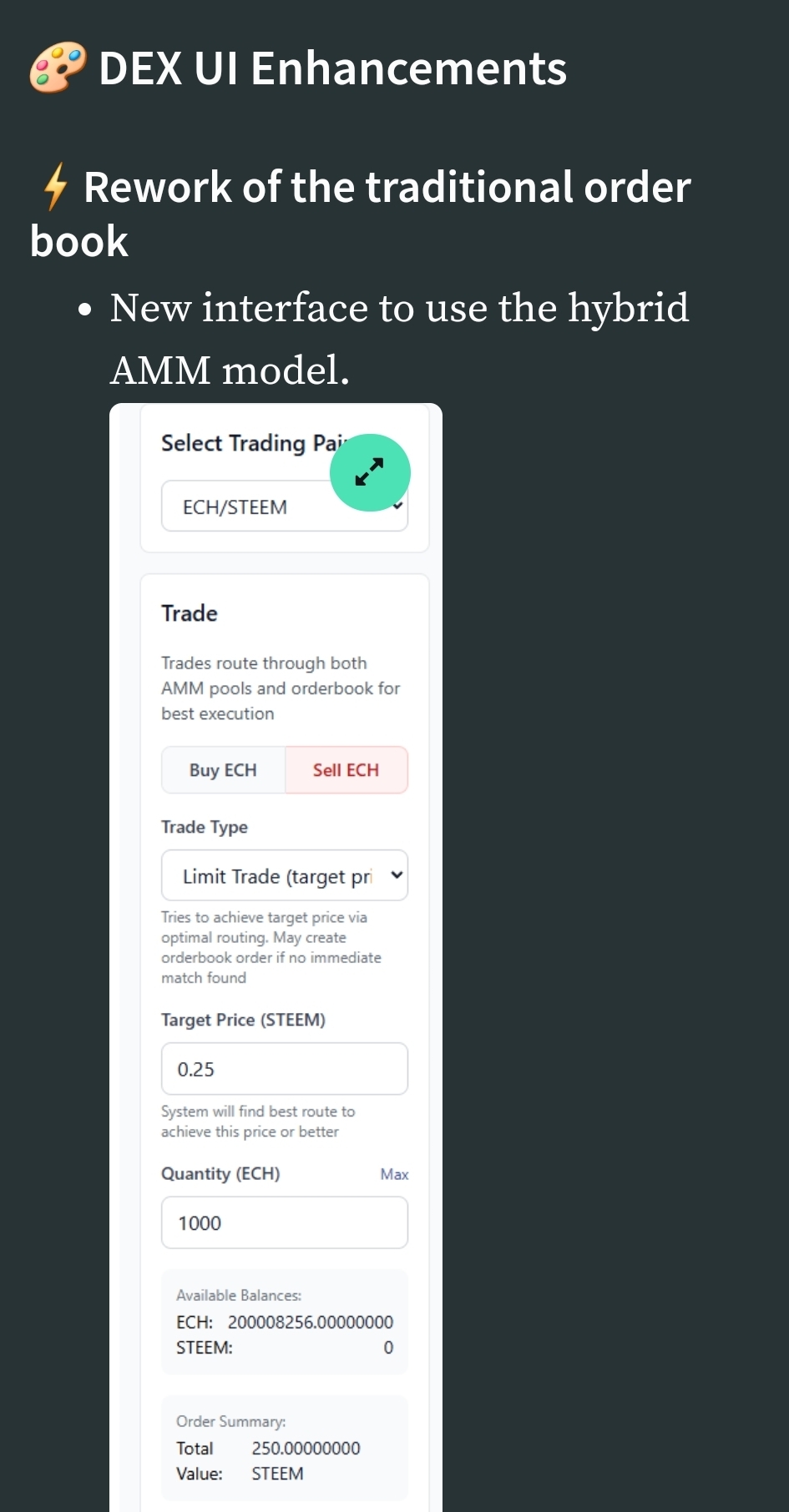 It seems that they're committed to merge AMM(Automated Market Maker) DEX such as Uniswap, and orderbook-based DEX. Interesting
