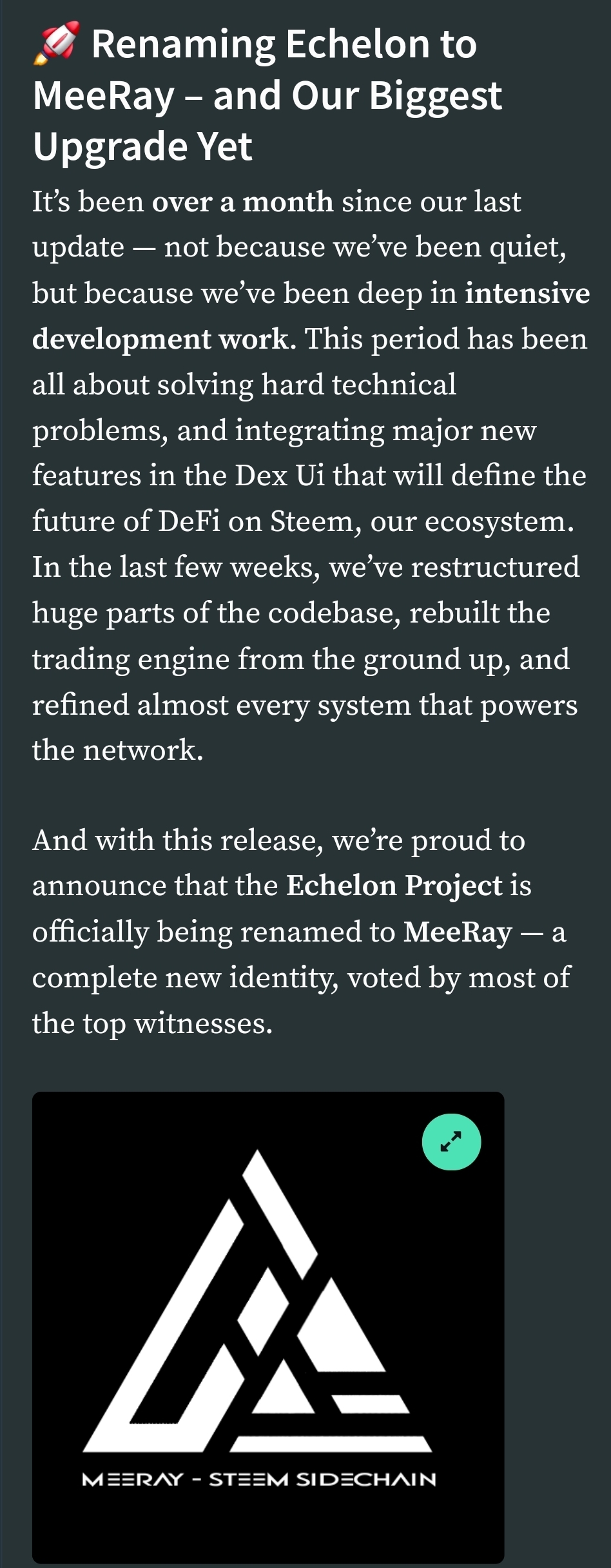 MeeRay was rebranded from Echelon which is a STEEM sidechain.