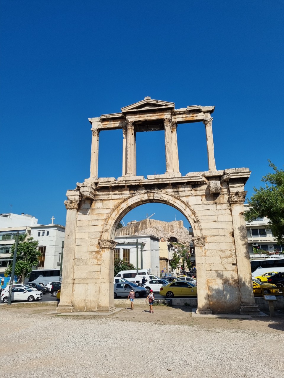 황제의 업적을 기리기 위해 AD 131년 완공한 문이다. 로마의 황제들은 그리스를 지배하면서도 그리스 문화에 대한 선망 같은 것이 있었다고 한다. 특히 하드리아누스 황제는 바로 옆에 오랜시간 완공을 못하고 있던 제우스 신전을 완공 시켜주고, 현재 하드리아누스 도서관으로 알려진 건물도 지어 주었다.
