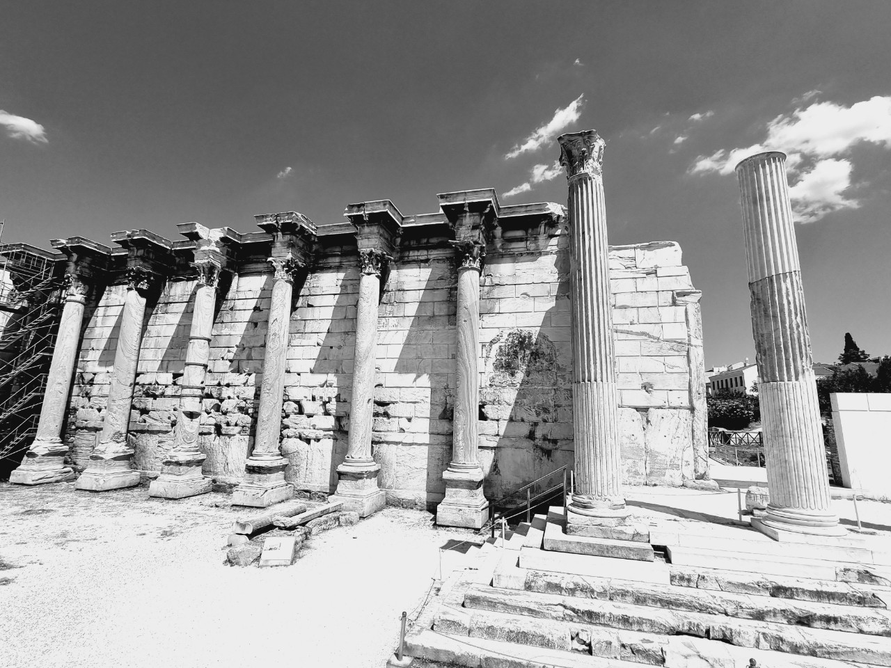 많은 부분이 파손 되었지만 어찌 이 한면의 반만 온전하다시피 남아 그때의 아름다움을 상상하게 하는 하드리아누스 도서관 이다. 큰 하나의 건물에 강당과 교실, 파피루스로 된 책을 보관하는 도서관 등이 있었다. 아테네시민들이 도서관을 이용했다고한다. 시민이 되어 권리를 갖는다는 것은 그만큼의 의무도 동시에 갖는다는 것을 그때도 알았겠지?