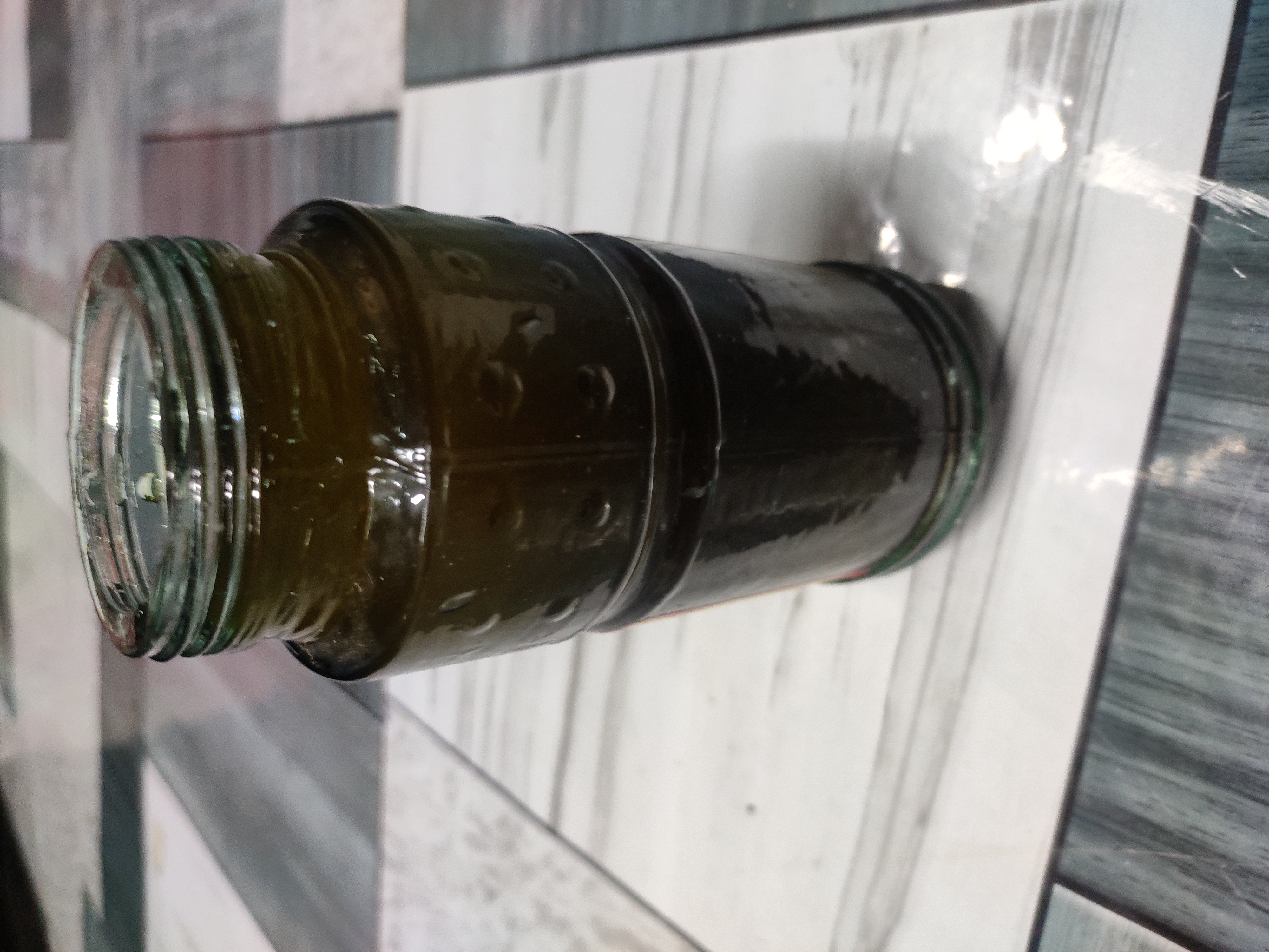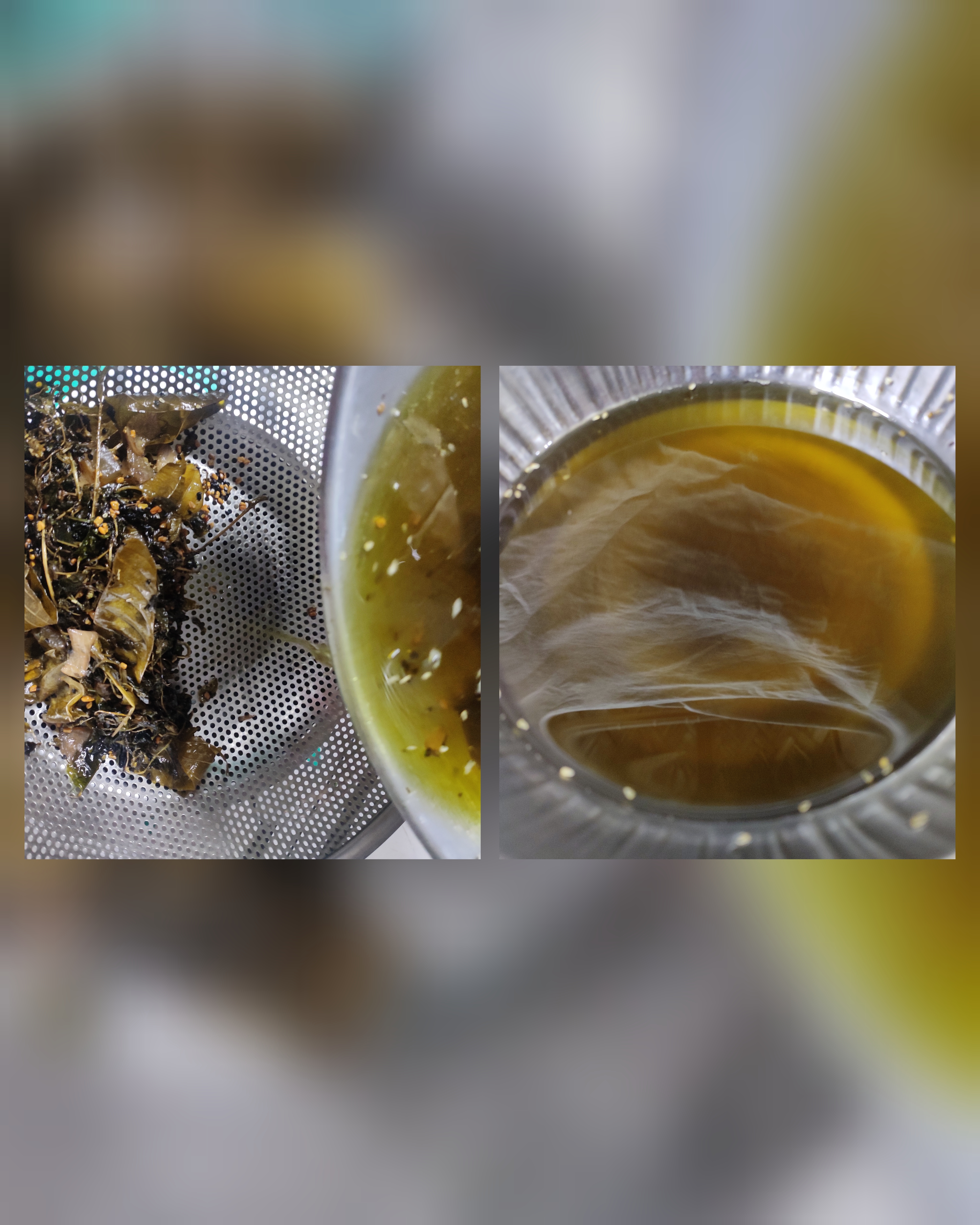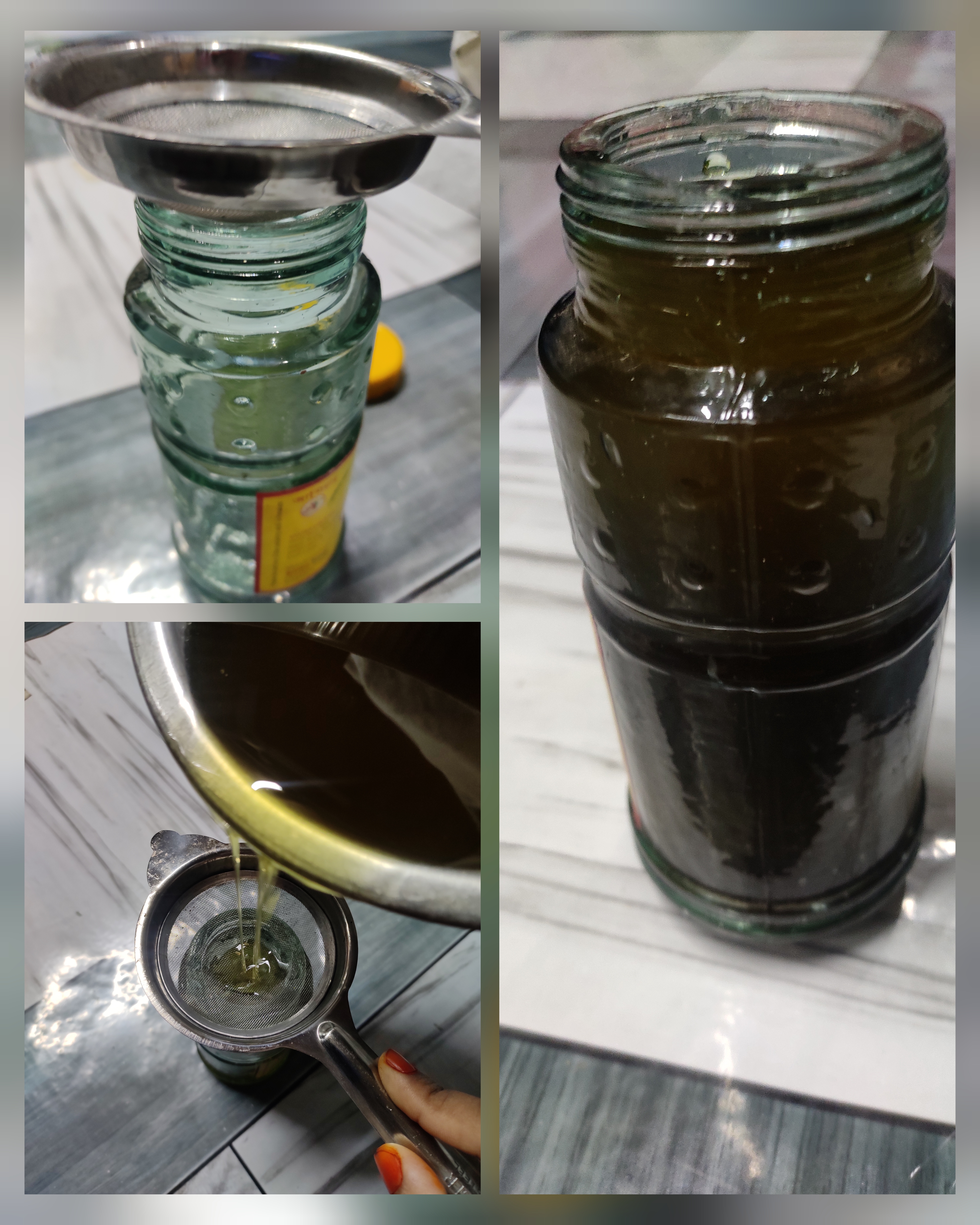 - তারপর একটি কাঁচের বতলে আরেকটি ছোট ছাঁকনি দিয়ে ছঁকে নিলাম।