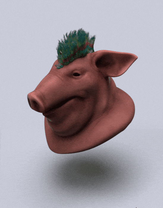 Pig With A Mohawk (GIF - click to watch)benterprise (38)in #hair • 7 years ago (edited) A mohawk on a pig head, what more could you want. #animals #digital #art #simulation