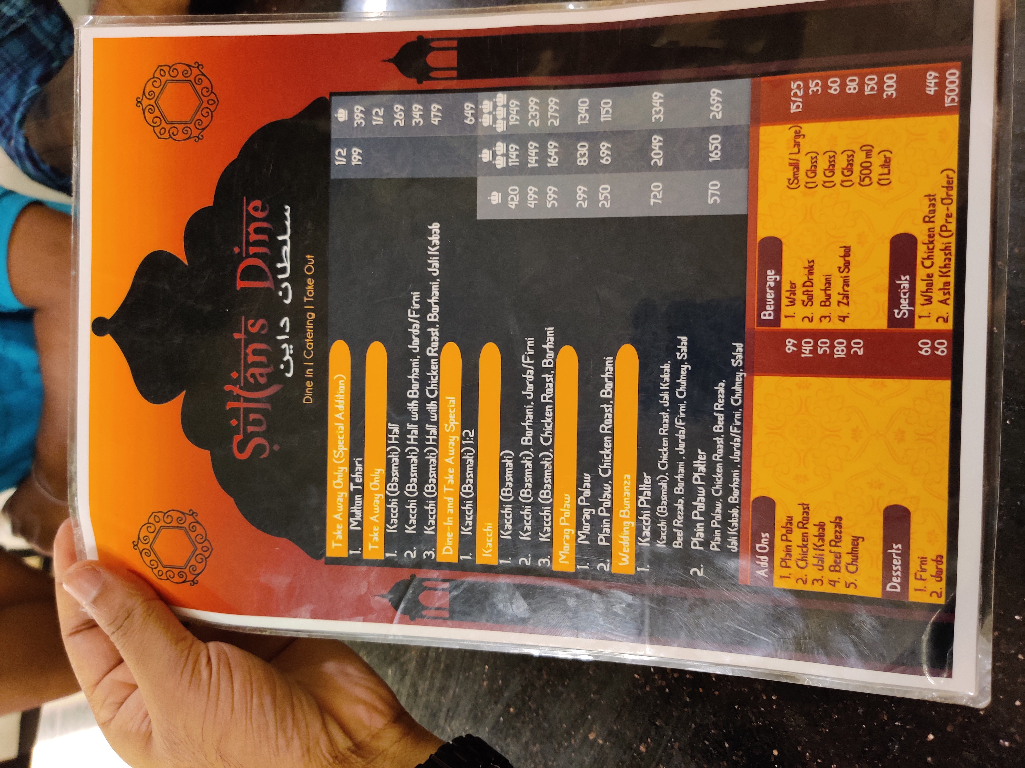 কিছুক্ষন বসে থাকার পর ওখানের লোক আসলো। আমরা মেনু কার্ড নিয়ে বললাম একটু পর আসেন। আমরা আগে ঠিক করে নেই। ভেবে চিনতে আমরা ১ঃ২ এর দুইটা কাচ্চি অর্ডার করলাম। কারণ আমরা ৪ জন ছিলাম। ২ জন করে ১ প্লেটার । পানীয় হিসাবে নিলাম বোরহানি আর আমি আলাদা ভাবে নিলাম জাফরান এর শরবত। নিলাম বলতে অর্ডার করেছি আরকি। তারপর আমি ভিতরের কিছু ছবি তুললাম। মানে ডেকরেশন এর আর মেনু কার্ড এর। দাড়ান দেখাচ্ছি -