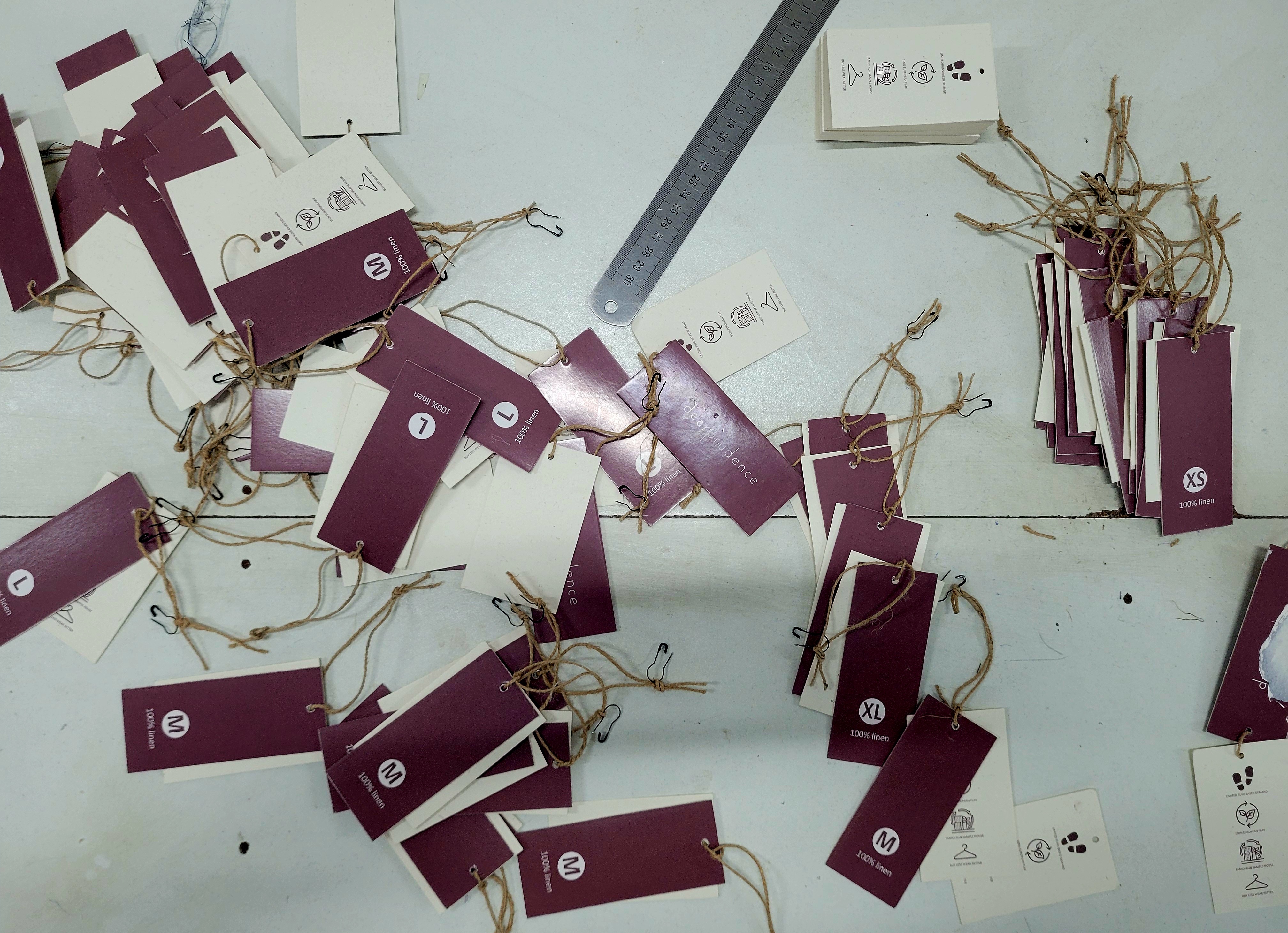 ছবিতে দেখানো যে হ্যাং ট্যাগ গুলো সেগুলো ইউকে এর একটি ফ্যাশন ব্র্যান্ডের। ব্যবসার জন্য আমার কোম্পানি উক্ত ফ্যাশন ব্র্যান্ডের প্রোডাক্ট গুলো তৈরি করি। তো গার্মেন্টস তৈরির জন্য হ্যাং ট্যাগ গুলোও আমরাই তৈরি করি। এখানে আমরা একটা স্ট্রিং এর সাথে দুইটি হ্যাং ট্যাগ কার্ড ব্যবহার করছি। আমাদের কার্ডে প্রধানত কোম্পানির লোগো, গার্মেন্টসের আলফাবেটিক সাইজ, ফেব্রিক কম্পোজিশন, প্রাইজ বক্স ইত্যাদি তথ্য ব্যবহার করছি। এছাড়া আরেকটি কার্ডে আমরা কিছু কেয়ার ইন্সট্রাকশন দিচ্ছি।