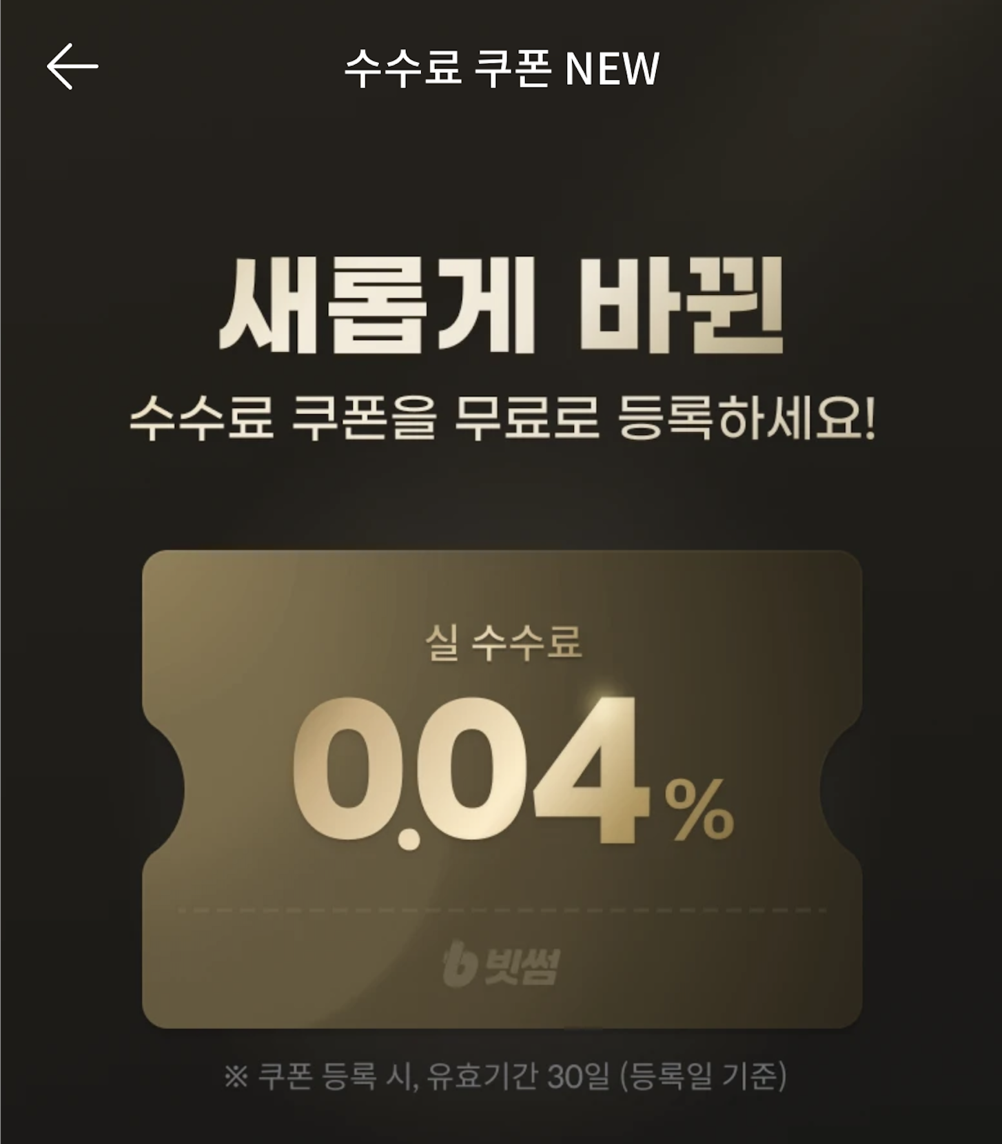 빗썸 수수료 쿠폰 (기한 만료전 재)등록 잊지 말기(0.25% → 0.04%)
