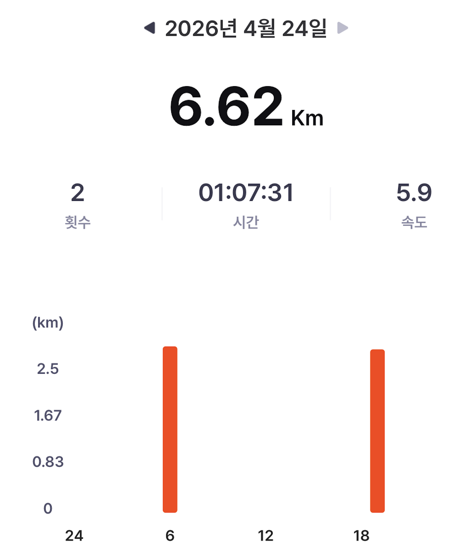 [M2E] 2026.04.24금 - 6.62km 오늘의 운동 완료 (목표 4km)