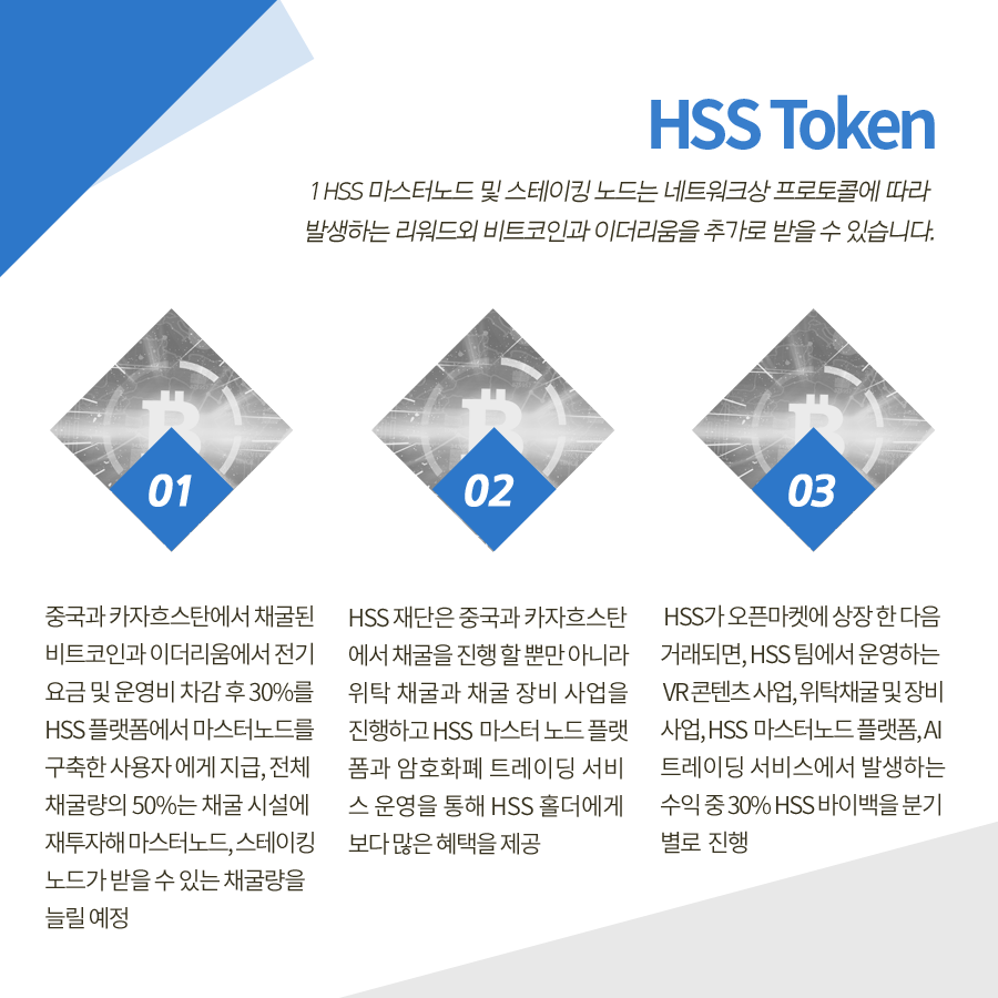 HSS(Hashshare)는 마스터노드와 비트채굴시스템이 결합되어있는 프로젝트입니다.