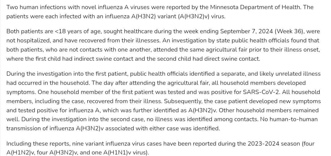 Two kids in Minnesota got H3N2v, a "swine" flu, after contact with pigs at an agricultural fair.