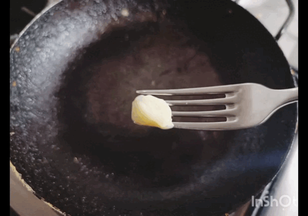 Llevamos una sárten a fuego bajo y agregamos un poquito de manteca de cerdo.