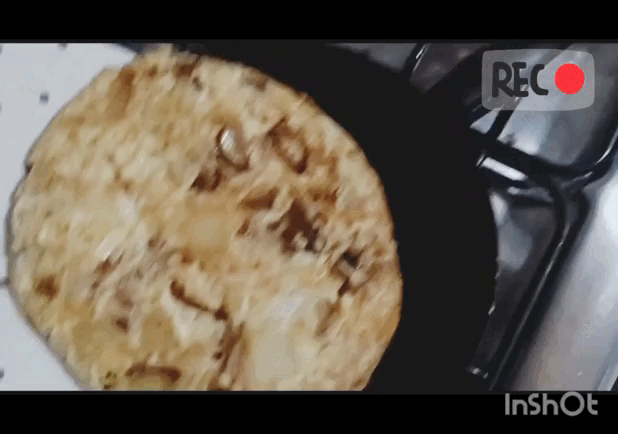 Dejamos cocinar nuestra tortilla hasta que veamos que los bordes estan secos y procedemos a voltearla, para esto me ayudo con un plato.
