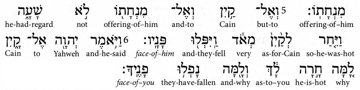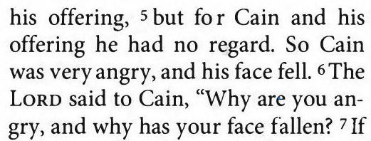 Then the offering of Cain was not looked upon with regard, which made Cain "very hot" and his "his face, they fell."