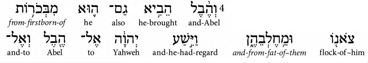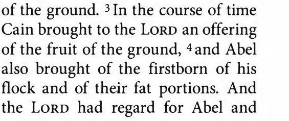The first three verses brought the boys from conception, through childhood and into their professions. We continue on as Abel's sheep was looked upon with regard by Elohim.