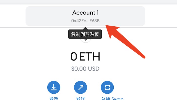 1、你的以太坊钱包地址,点一下就可以复制。