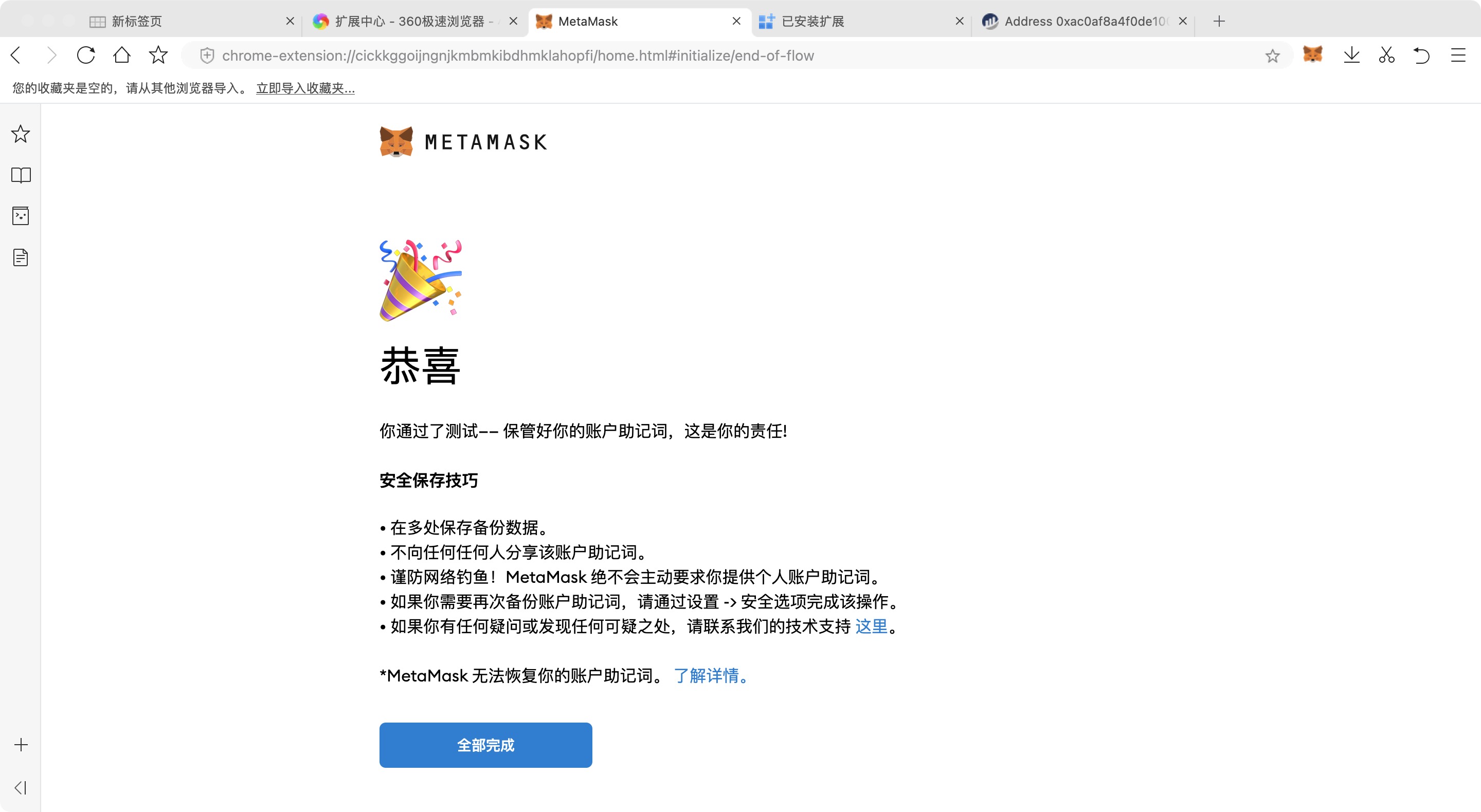 至此,你的小狐狸钱包就创建完毕了。