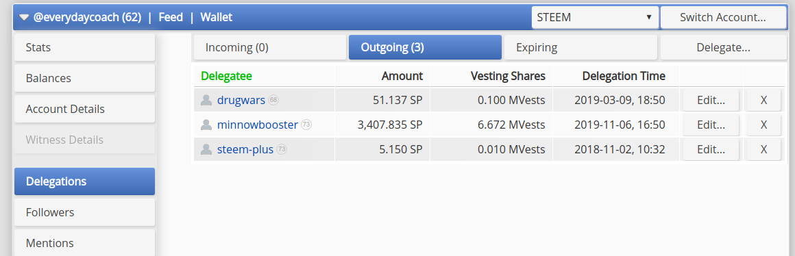 Remove delegationeverydaycoach (62)in #help • 6 years ago Can anyone tell me how to cancel my delagation of SP #steem #steemit