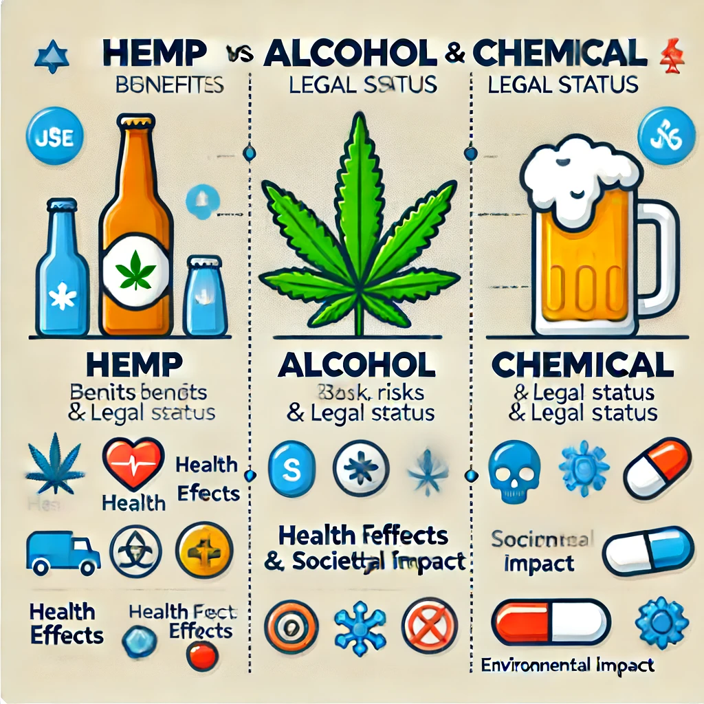 The Comparative Effects of Hemp, Alcohol, and Chemical Substances: Why Hemp is the Superior Choice 🌿🍺💊