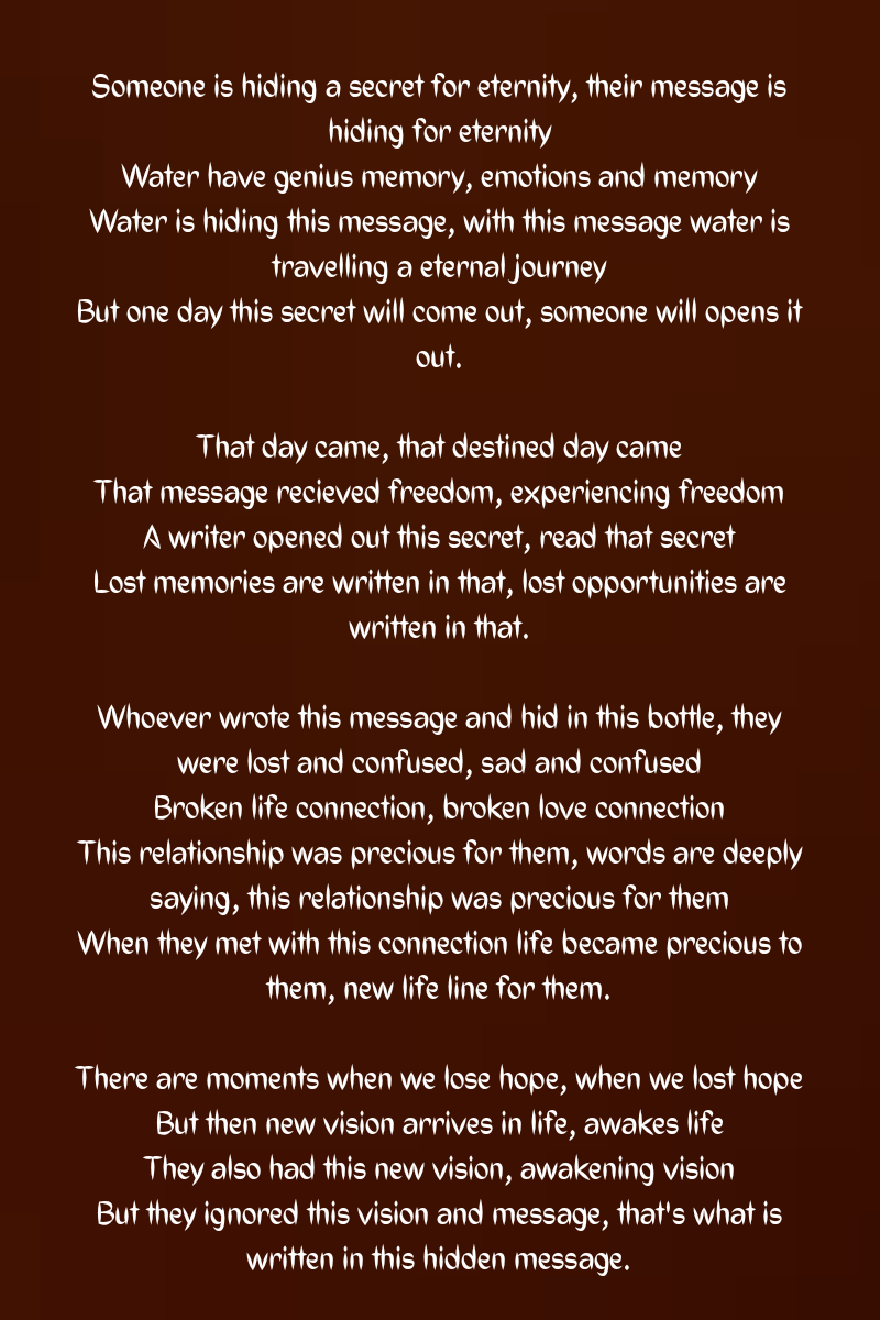 Whoever wrote this message and hid in this bottle, they were lost and confused, sad and confused