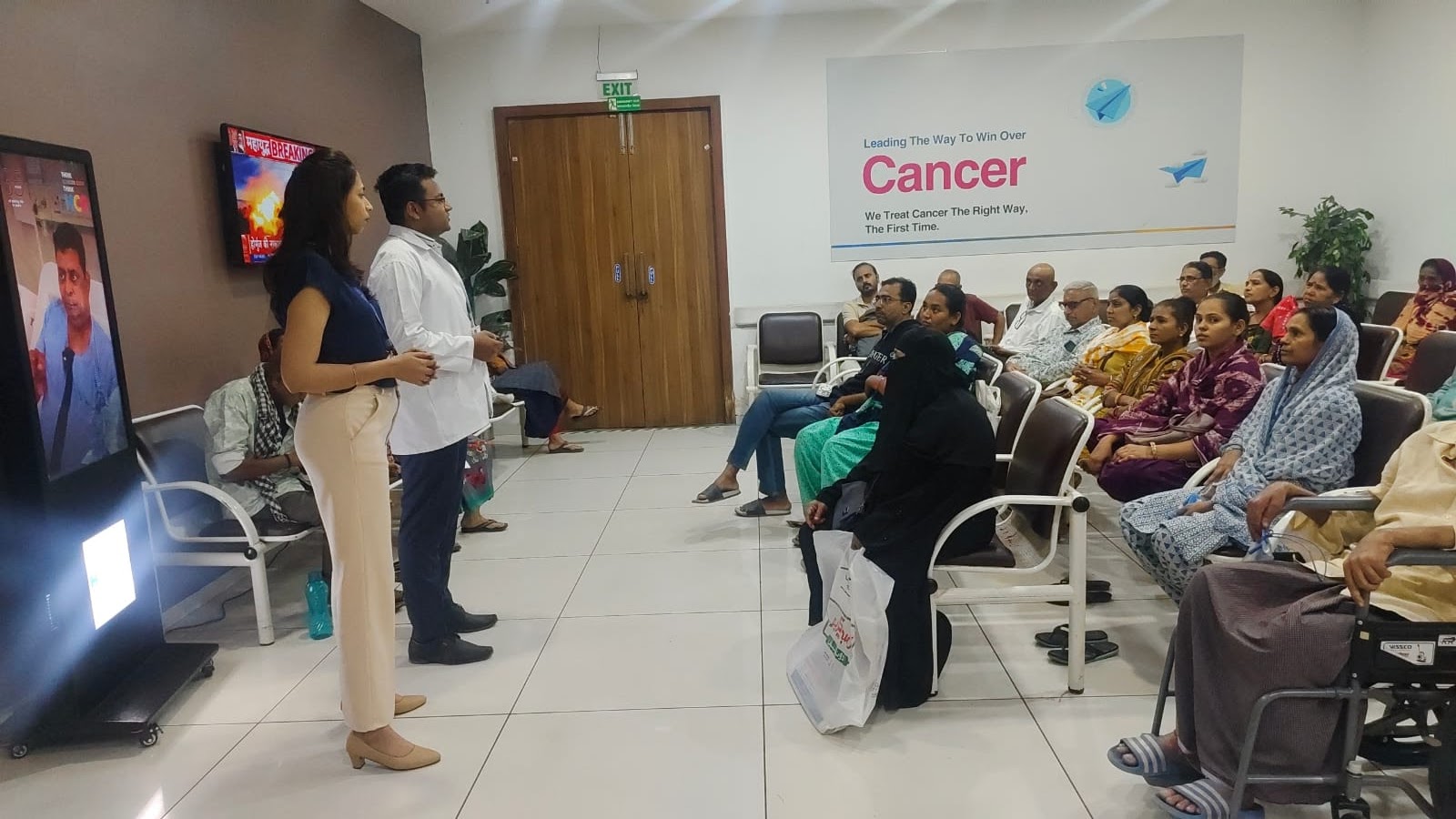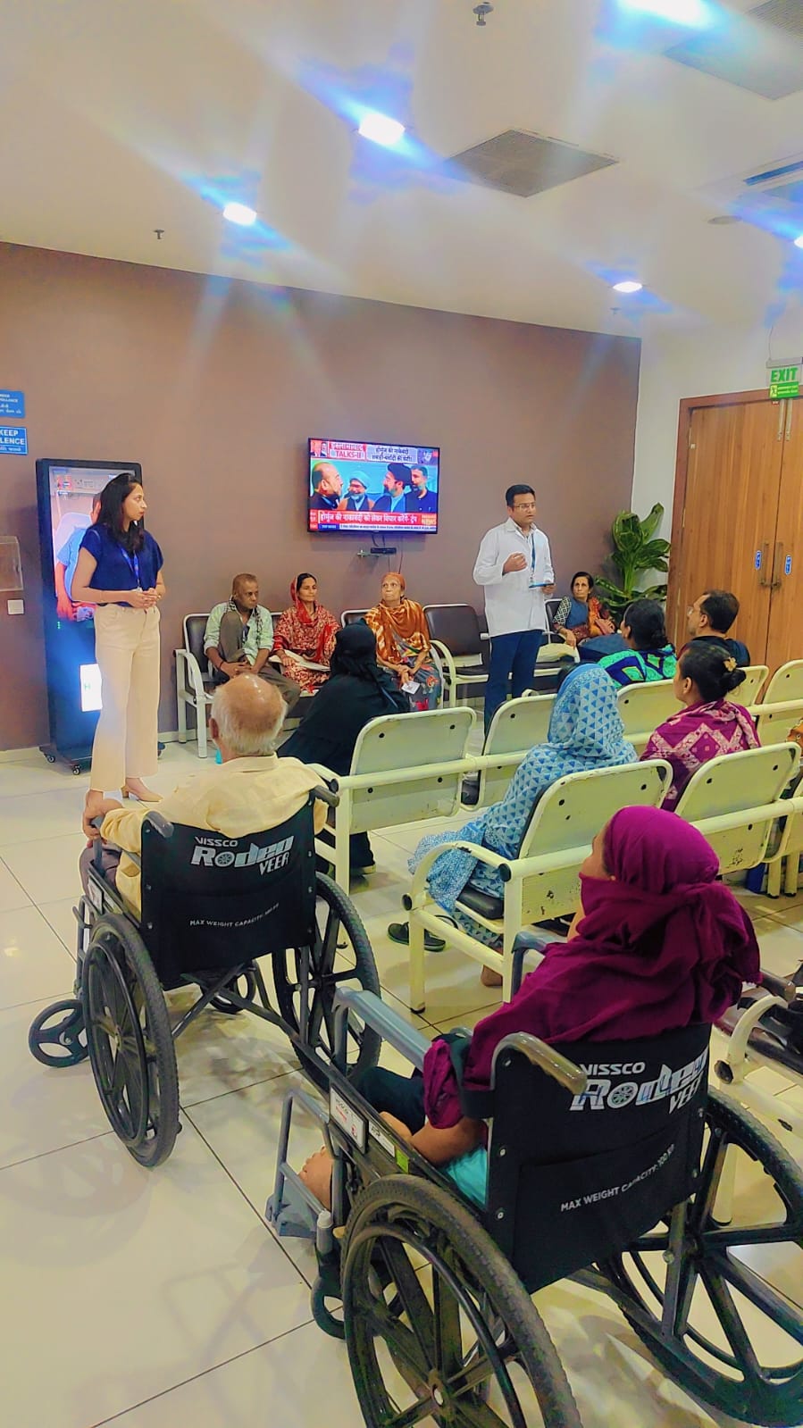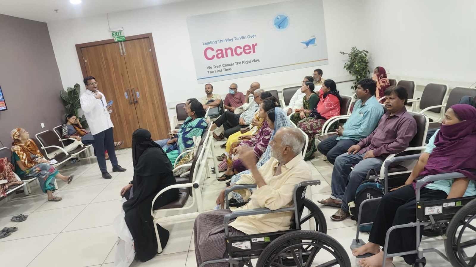 During my rounds, I spent time meeting several patients and their relatives who had come for cancer treatment. Every patient carries a different story, and every family comes with fear, hope, confusion, and emotional pressure. Some patients were receiving chemotherapy, some were waiting for investigations, while others were discussing treatment plans with doctors. Looking at them, I suddenly felt that many people still do not fully understand cancer and infection prevention. I thought that instead of only observing the situation, why not use this opportunity to educate them in a simple and understandable way. So I gathered patients’ relatives and attendants in the waiting area and started a small awareness session.